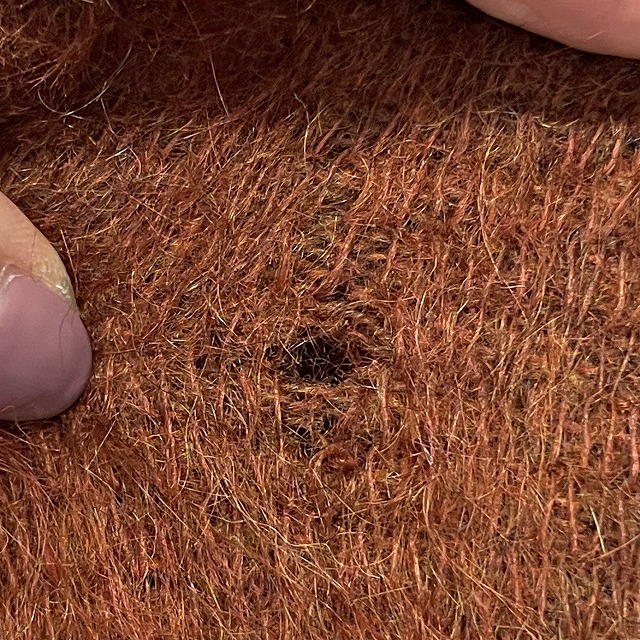 - 画像のように、右胸付近や前右袖切り替え付近に穴がございます。