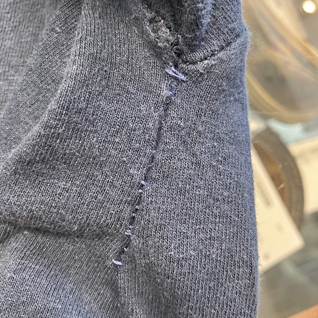 - 左脇下にリペアがみられます。その他、スレ、アタリ等の着用感ございますが、ユーズド慣れされた方でしたら、まだまだ問題なく着用していただけます。