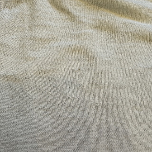 - リブにダメージ、フロント部分に小穴、右袖に薄っすら汚れが見られます。画像でご確認ください。その他、年代相応の着用感はございますが、ユーズド慣れされている方でしたらまだまだ問題なく着用して頂けます。