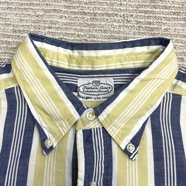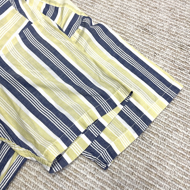 「ストライプ柄、3点留め、イエロー×ネイビー×ホワイト、サイズL」