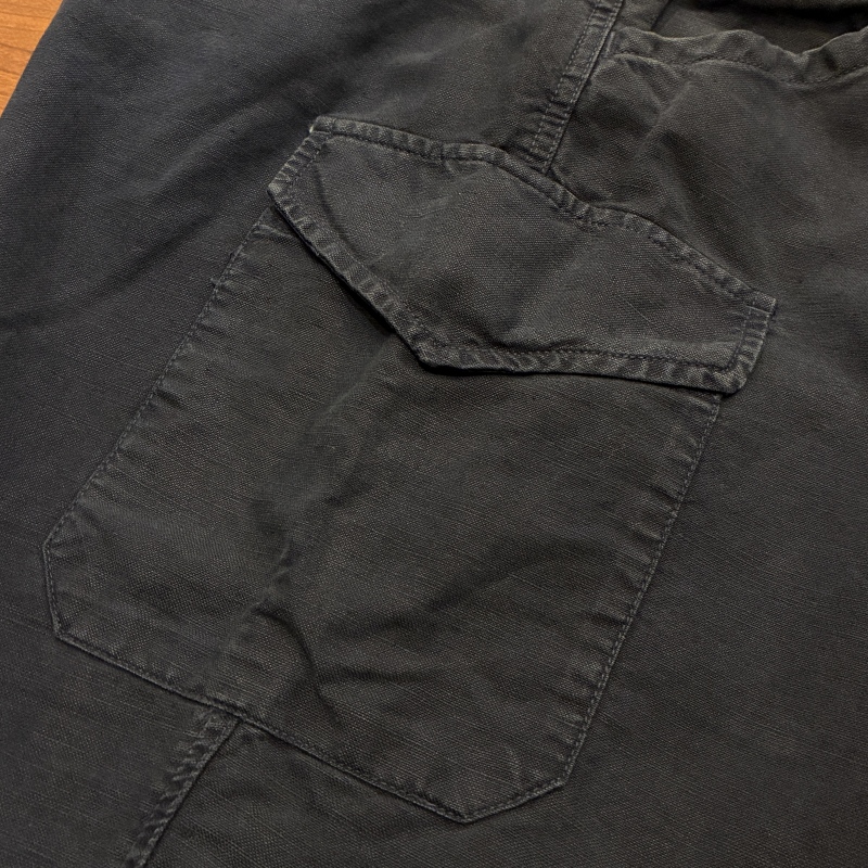 - 素材特有の繊維の飛び出しや多少のアタリや擦れ等の着用感がございますが目立つダメージ等は無く、まだまだ問題無く着用していただける状態です。