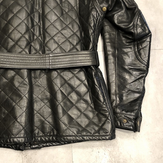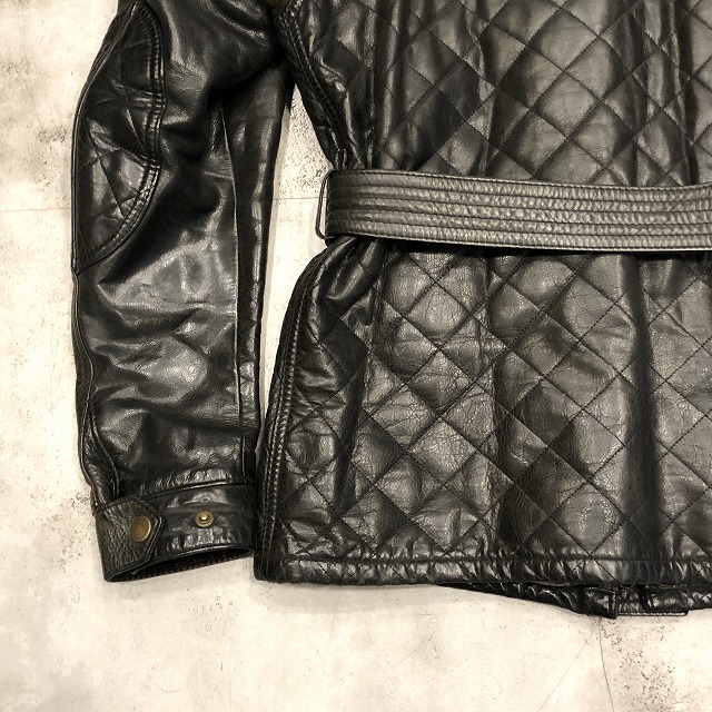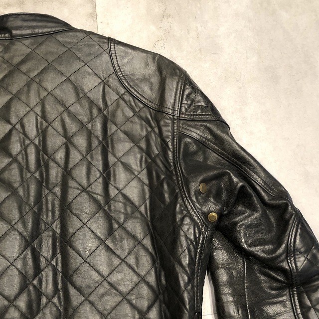 ワックスドコットンとはまた異なる、重厚なカウレザーを使用し、全体に施されたダイヤキルトの切り替えが強烈な存在感を放つ一着です。