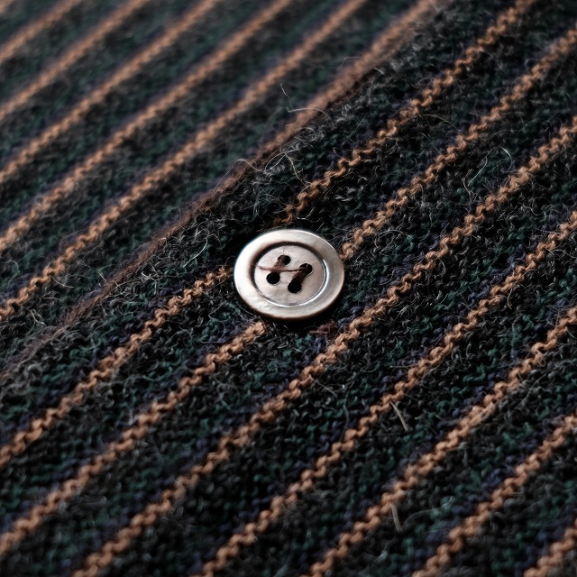 前面にはブラウンベースと相性の良いグリーンやブルーベースのストライプ。