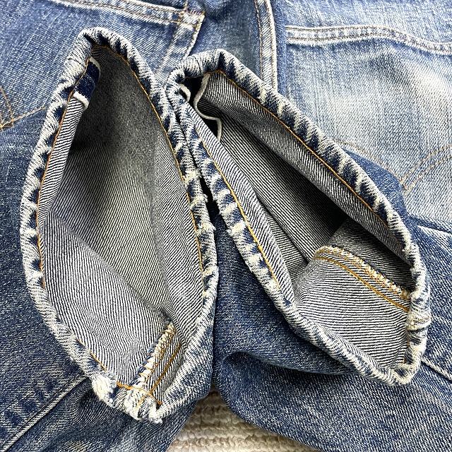 - 画像のように、汚れ、スレ、小傷等着用感があり、裾移植がされております。