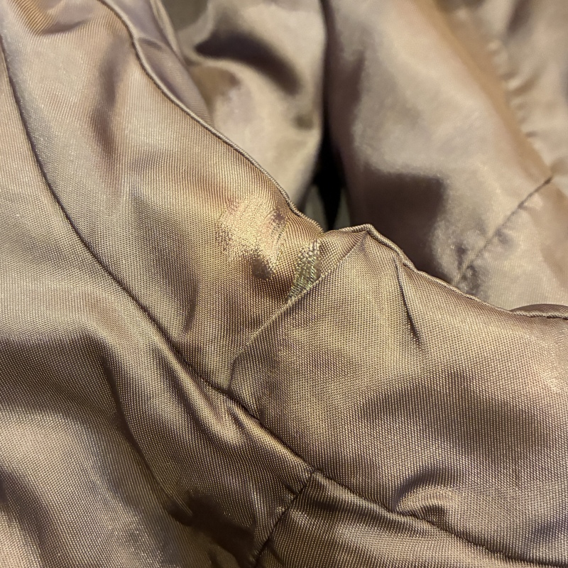 - 多少の小傷やリブ部分に毛羽立ち、ライナー脇部分に一部画像の様なダメージ、金属部分に緑青等が見られます。