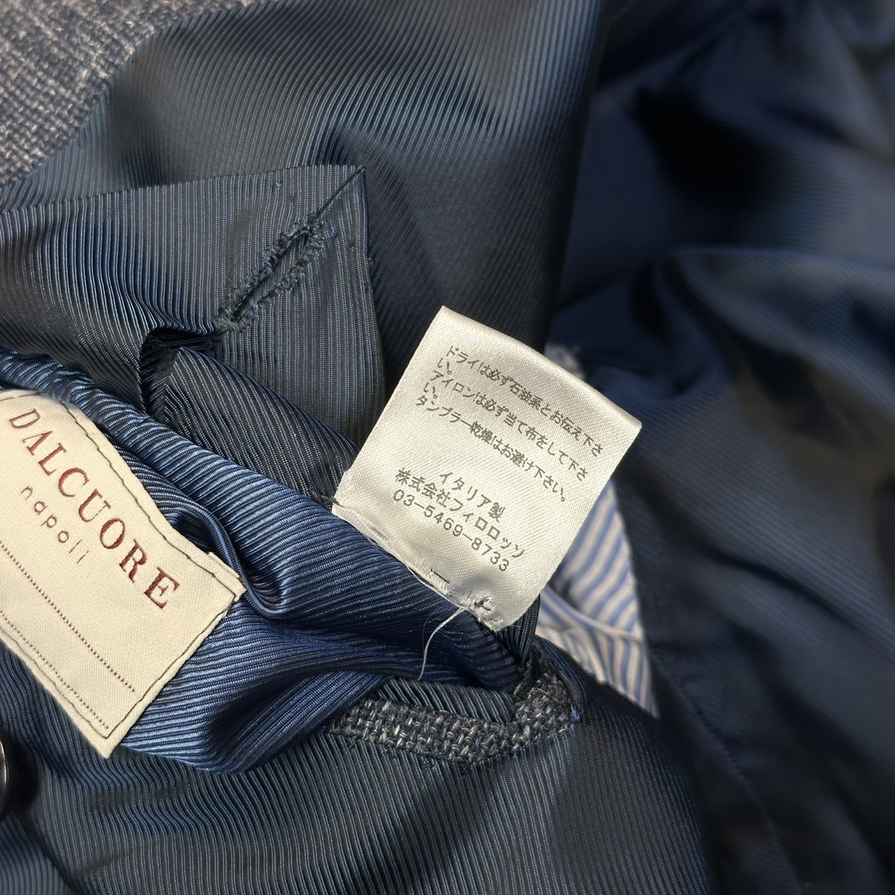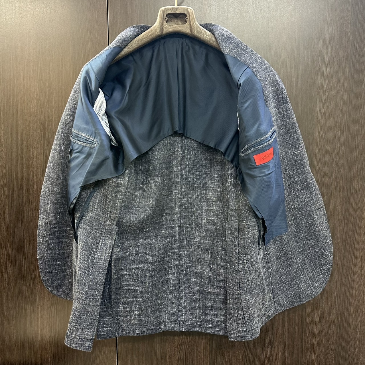 ウール、シルク、モヘア、リネンの4者混生地、春夏秋に適した素材となります。