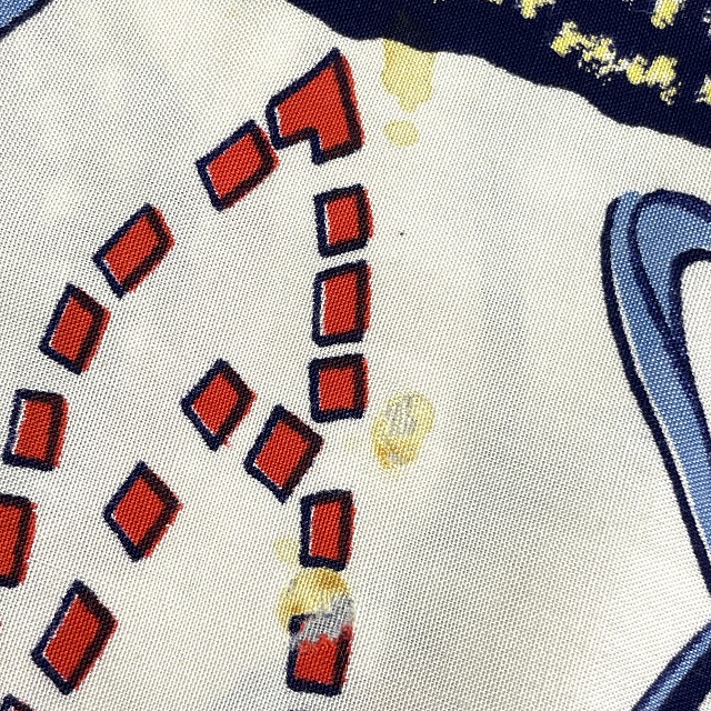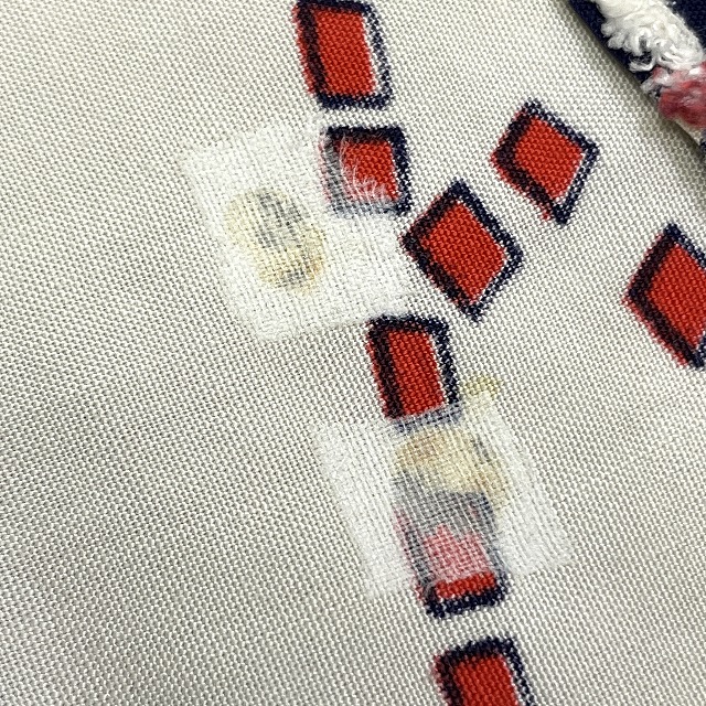 - 画像のように、薄汚れやわずかな汚れ、糸ツレがあり、前左裾上付近に数か所リペアがございます。