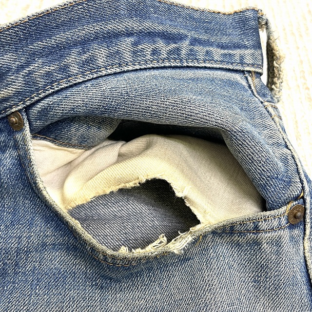 トップボタン裏刻印『6』、バックポケット裏 シングルステッチ