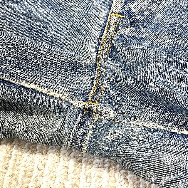 - 画像のように、汚れ、キズ、スレ、アタリ、スレーキに破れがあり、股にリペアがございます。