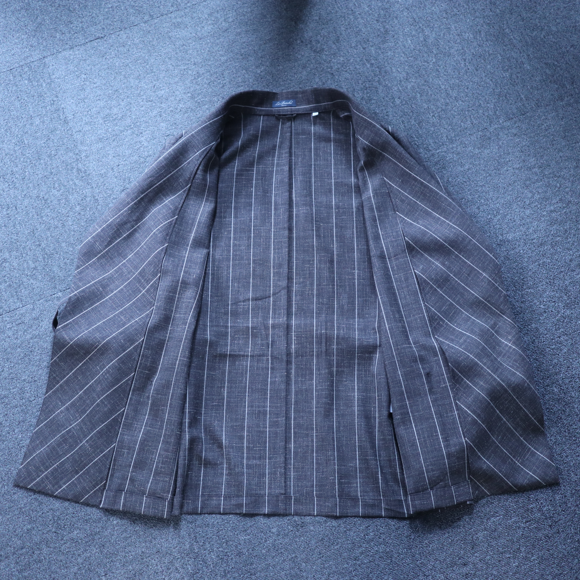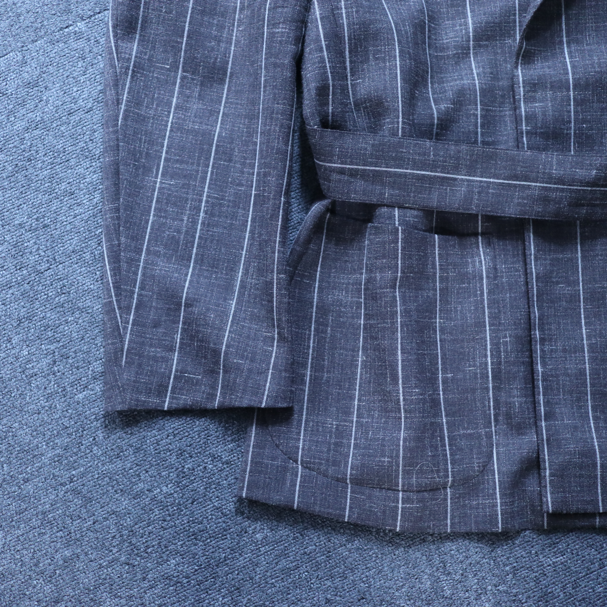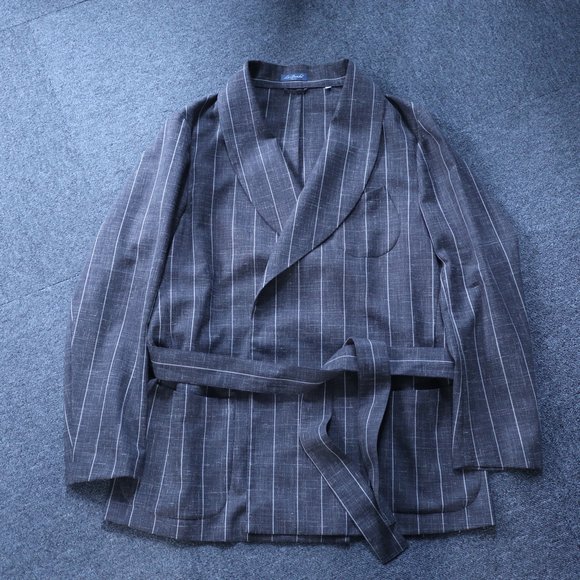 WOOL / LINEN STRIPE SHAWL COLLAR JACKET《48》