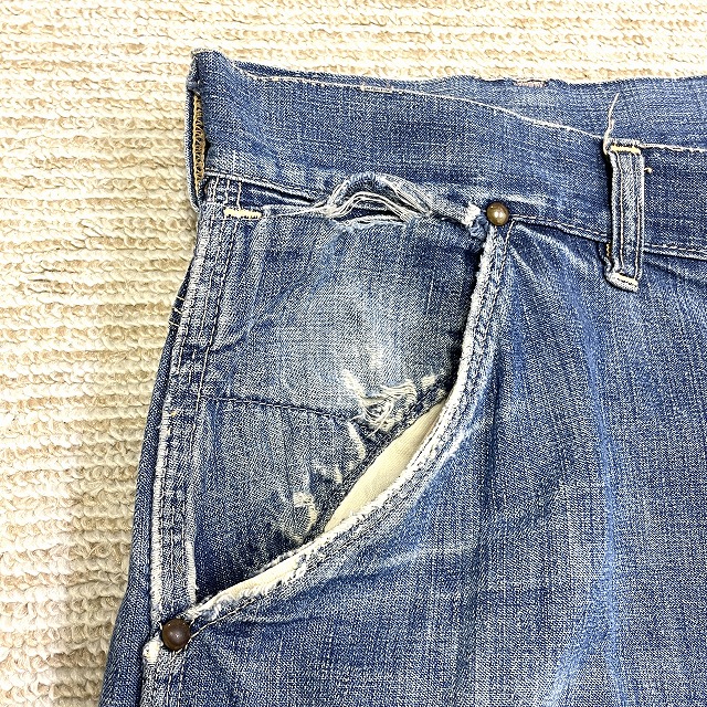 股、腿付近、右ヒップポケット、裾等にリペアがございます。