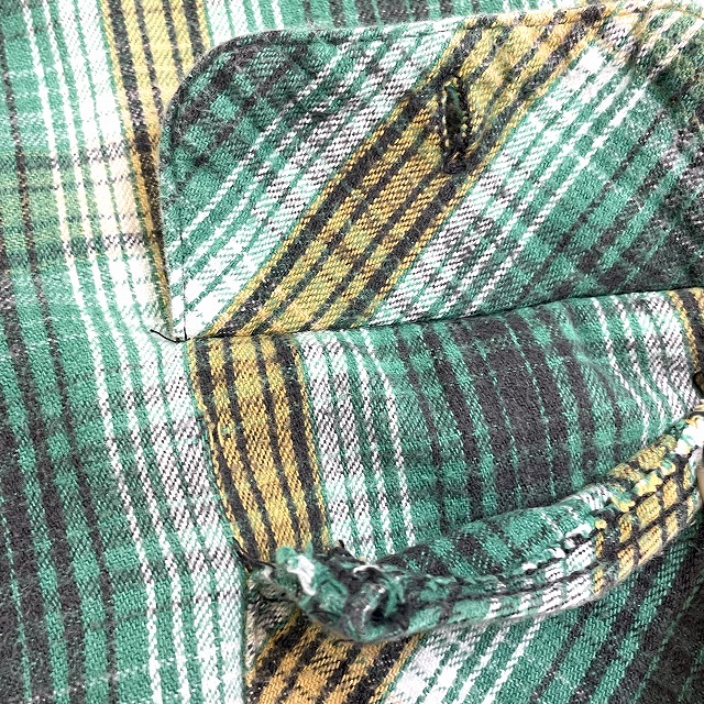 左胸ポケットの縫製にステッチ抜けがあり、後裾にホツレがございます。