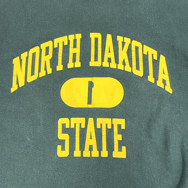 「3段プリント、NORTH DAKOTA STATE、グリーン×イエロー、サイズL」