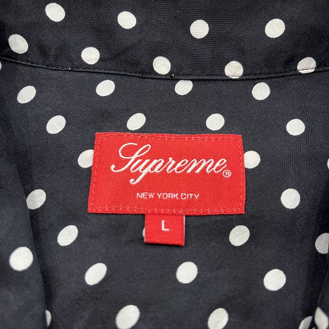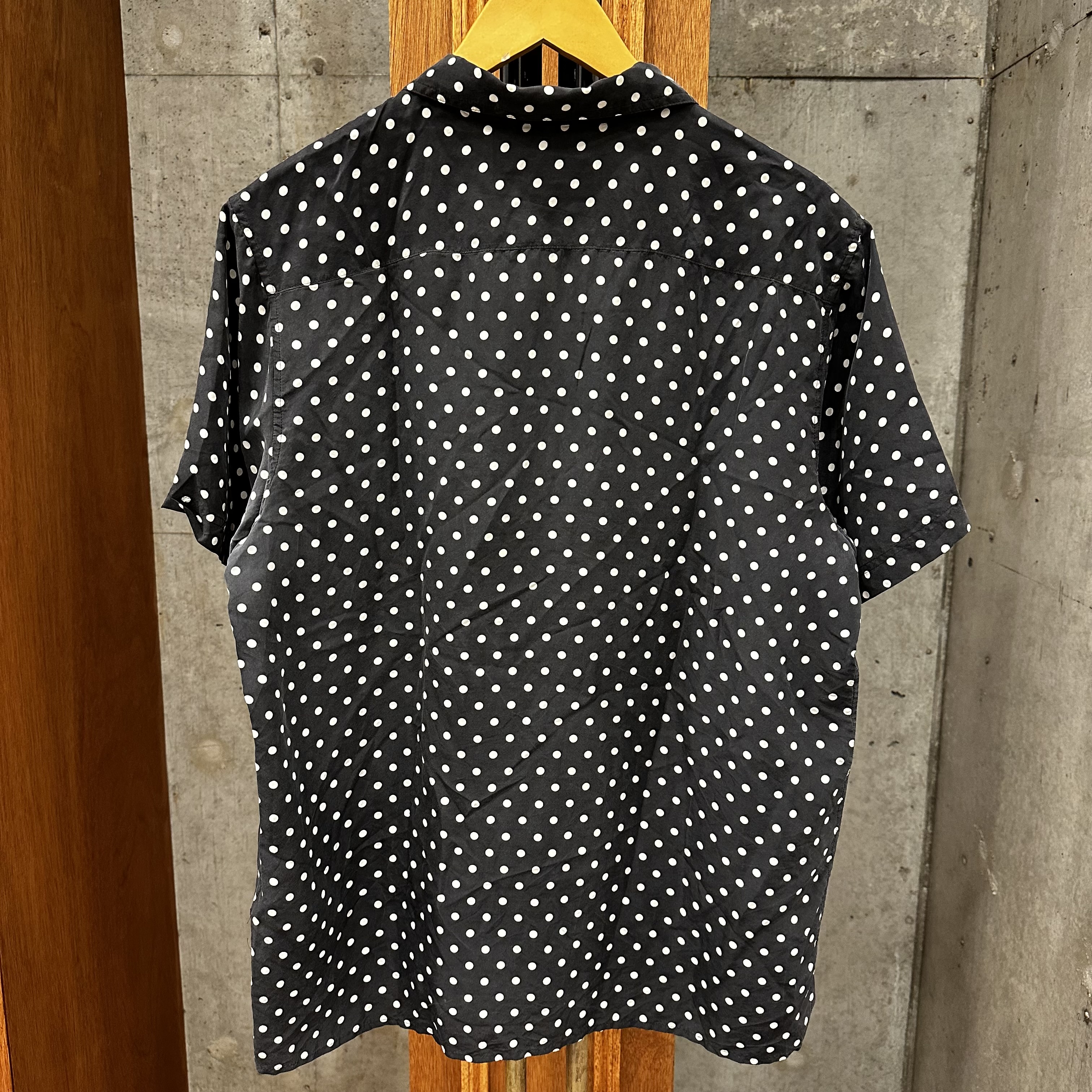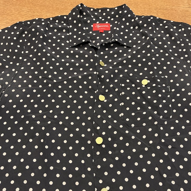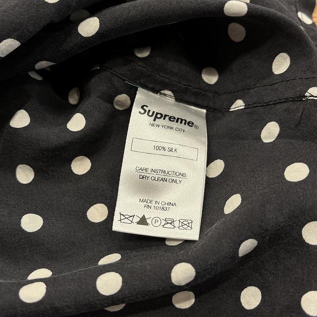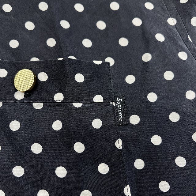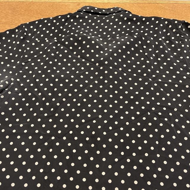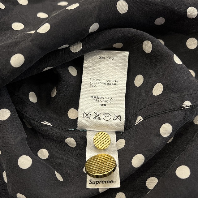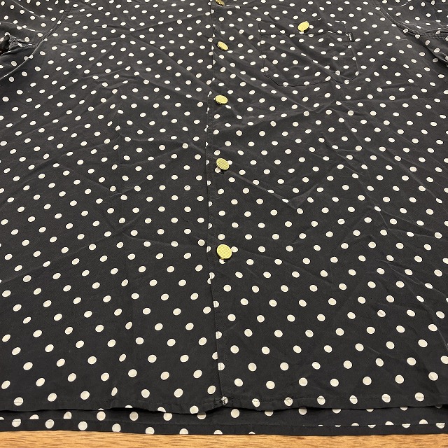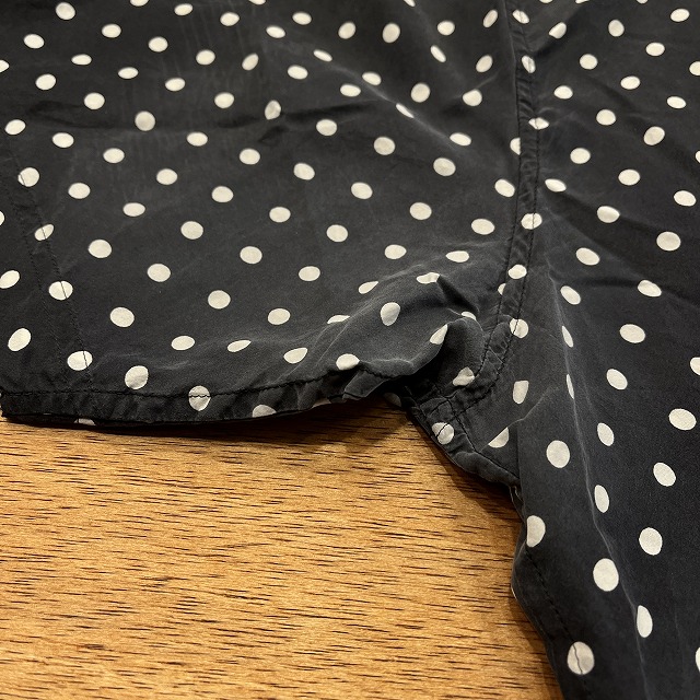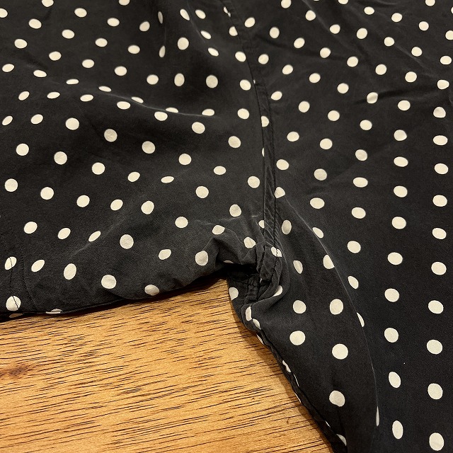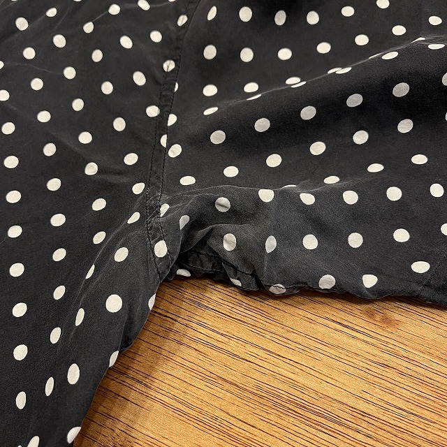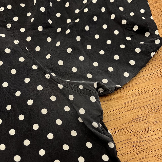 肌触りの良いシルク素材と、全面に施されたポルカドット柄が魅力的な一着です。
