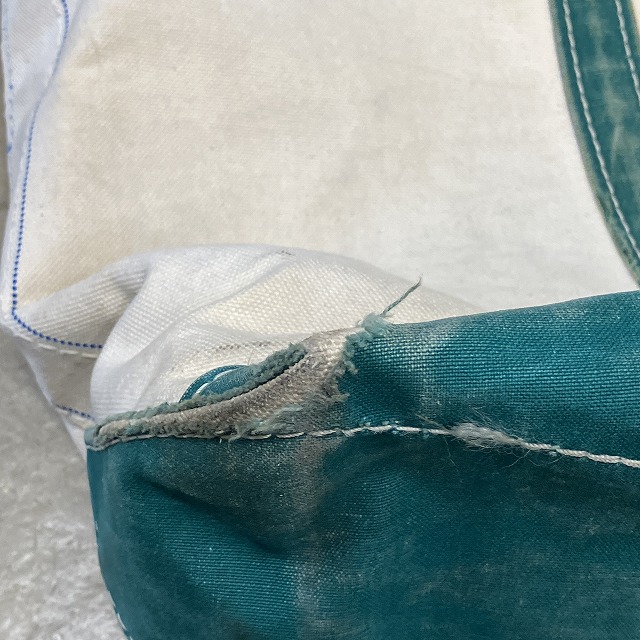 - 四つ角部分に破れやダメージ、ハンドル部分に擦り切れやダメージがみられます。