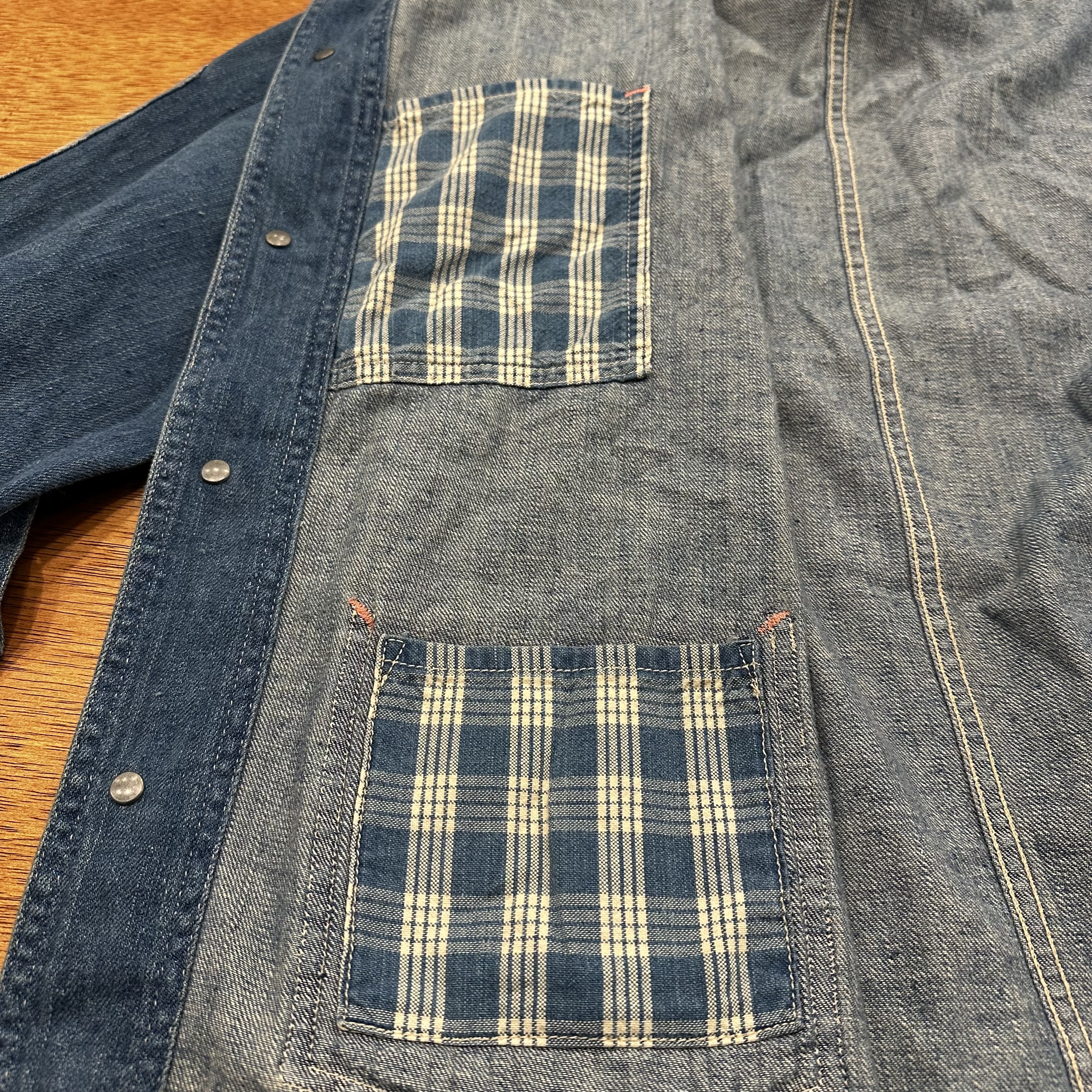 - 色落ちやパッチワークは元々の加工で、雰囲気の良い一着です。