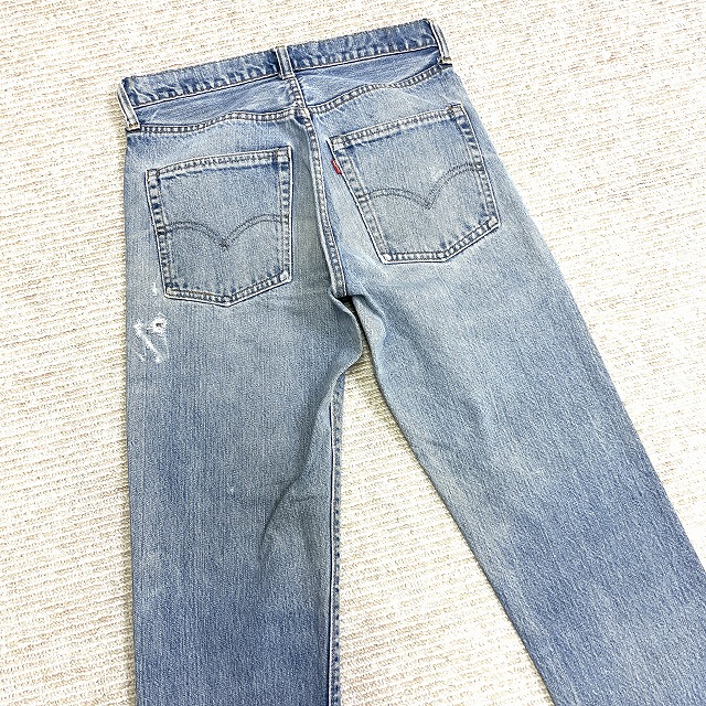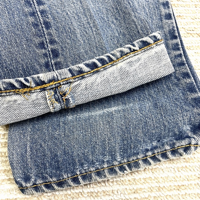 - 画像のように、汚れ、スレ、ホツレ、小傷があり、左ヒップポケット下に穴等のダメージがございます。