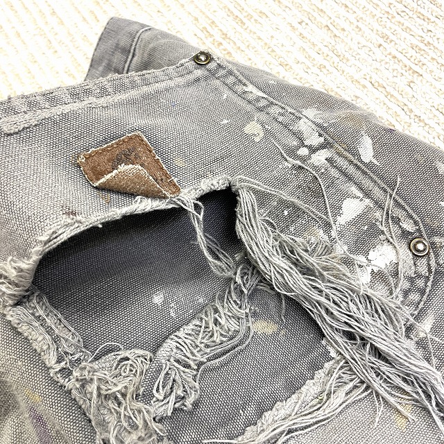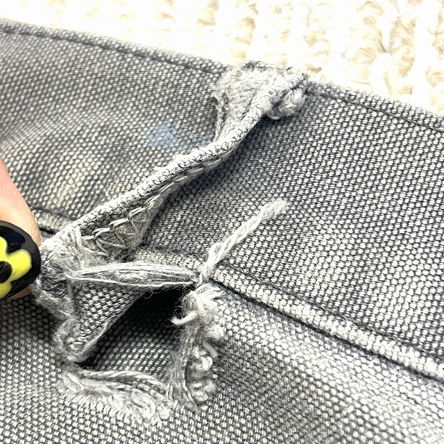 前両脚、裾、ヒップポケット等に破れ等のダメージがございます。