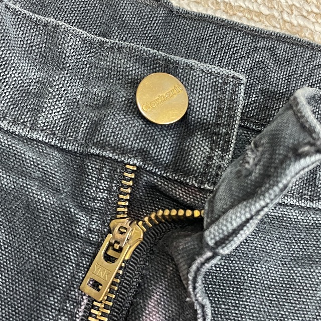 - 画像のように、色褪せ、スレ、汚れ、キズがあり、ウエストボタン付け根の生地にダメージがございます。