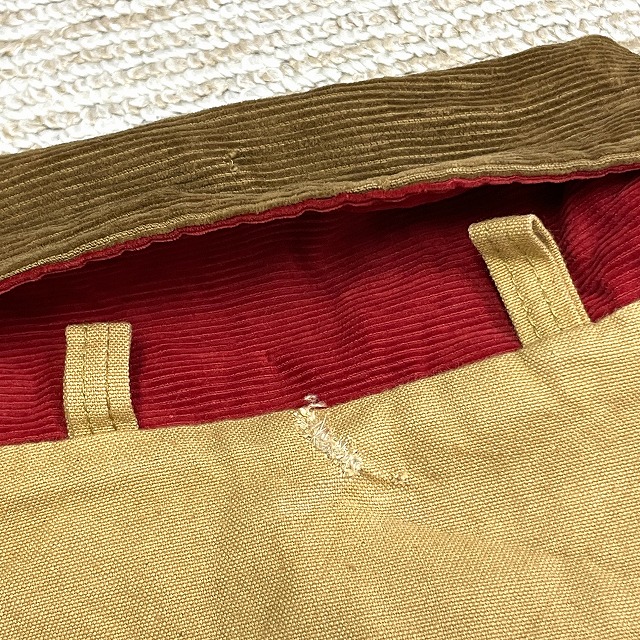 - 画像のように、汚れ、スレ、キズがあり、ベージュ側の後襟付け根や後裾上等数か所にリペアがございます。