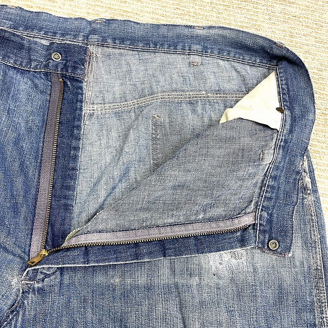 股、腿付近、右ヒップポケット、裾等にリペアがございます。