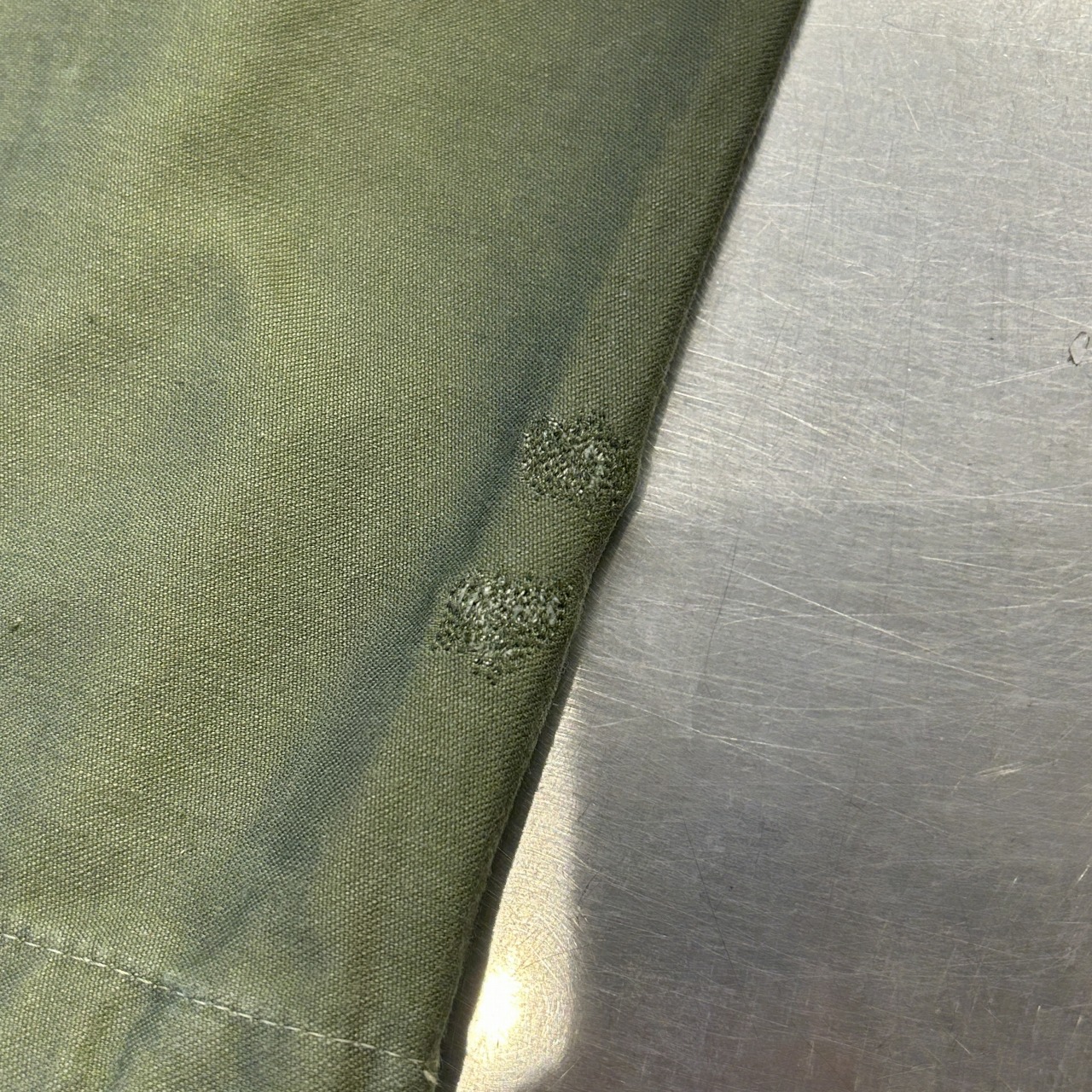- 画像の様に腰付近に小さなリペア、裾にリペアやダメージや薄い汚れ、ドローコードにダメージ、使用感がございます。