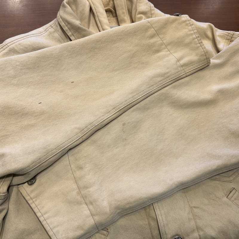 - 袖に複数箇所汚れがございます。その他にスレやアタリ等の着用感がございますが、古着慣れされた方でしたら問題無く着用していただける状態です。
