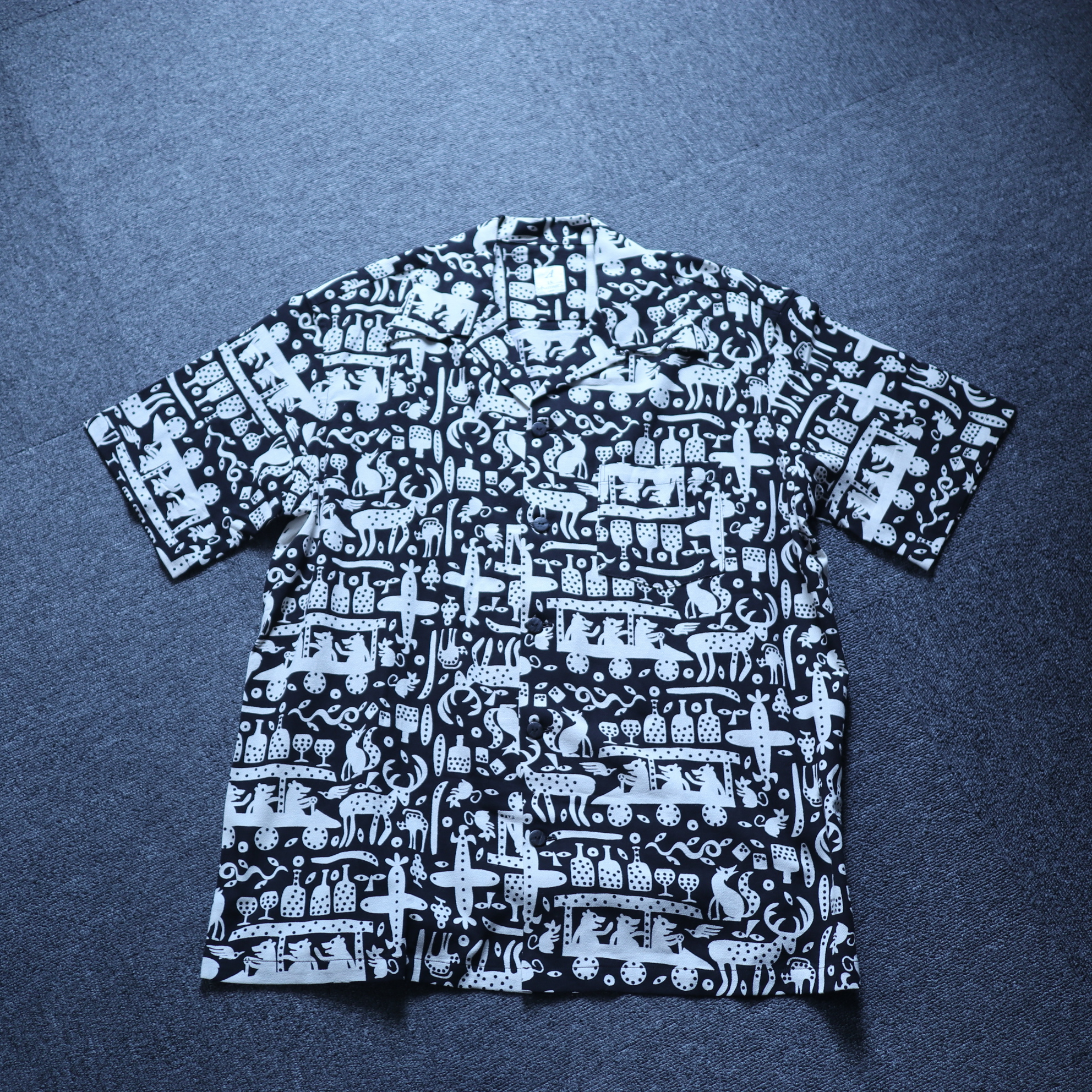 COTTON PRINT OPEN COLLAR SHIRT《XL》