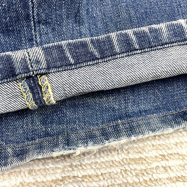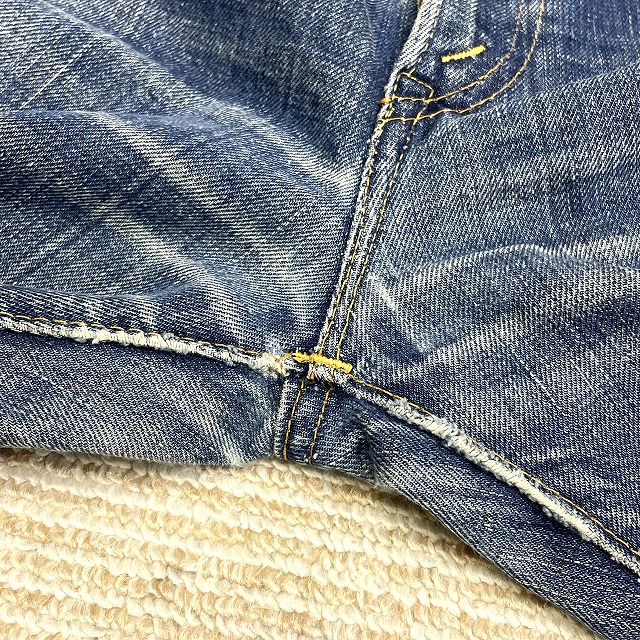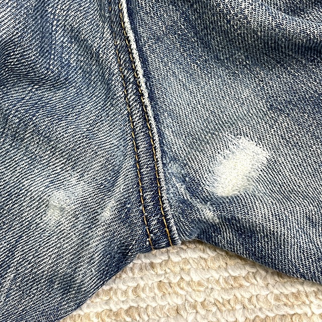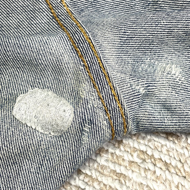 - 画像のように、汚れ、アタリ、スレ、キズがあり、股にリペアがございます。