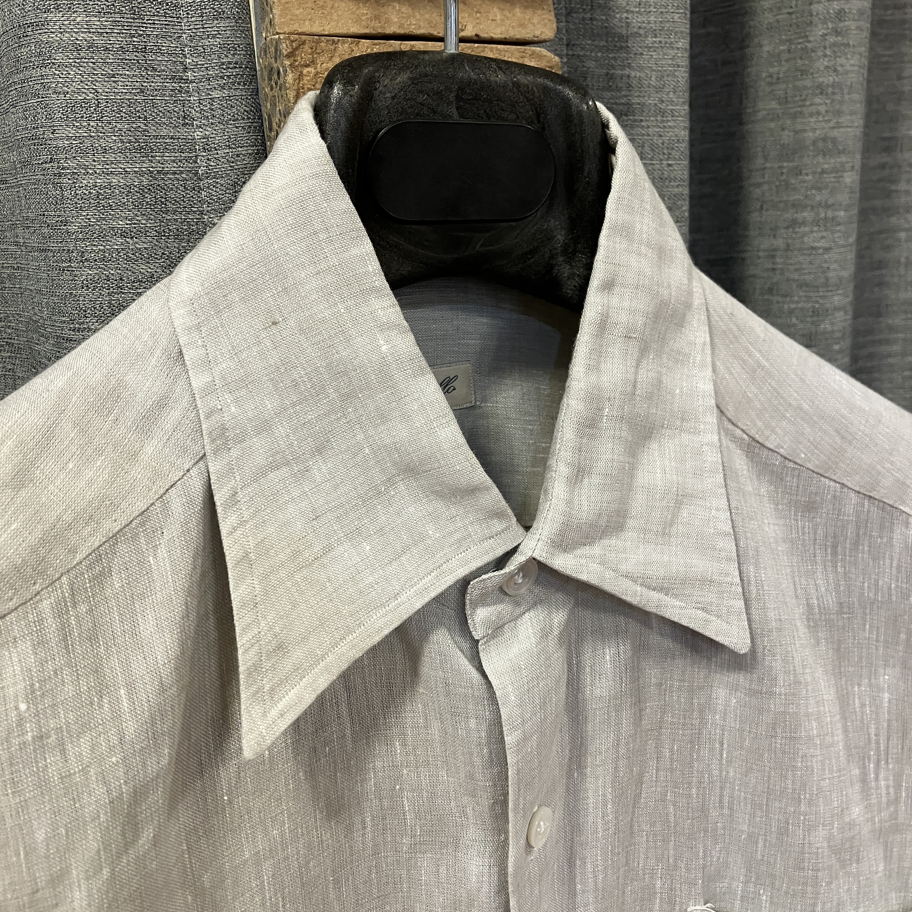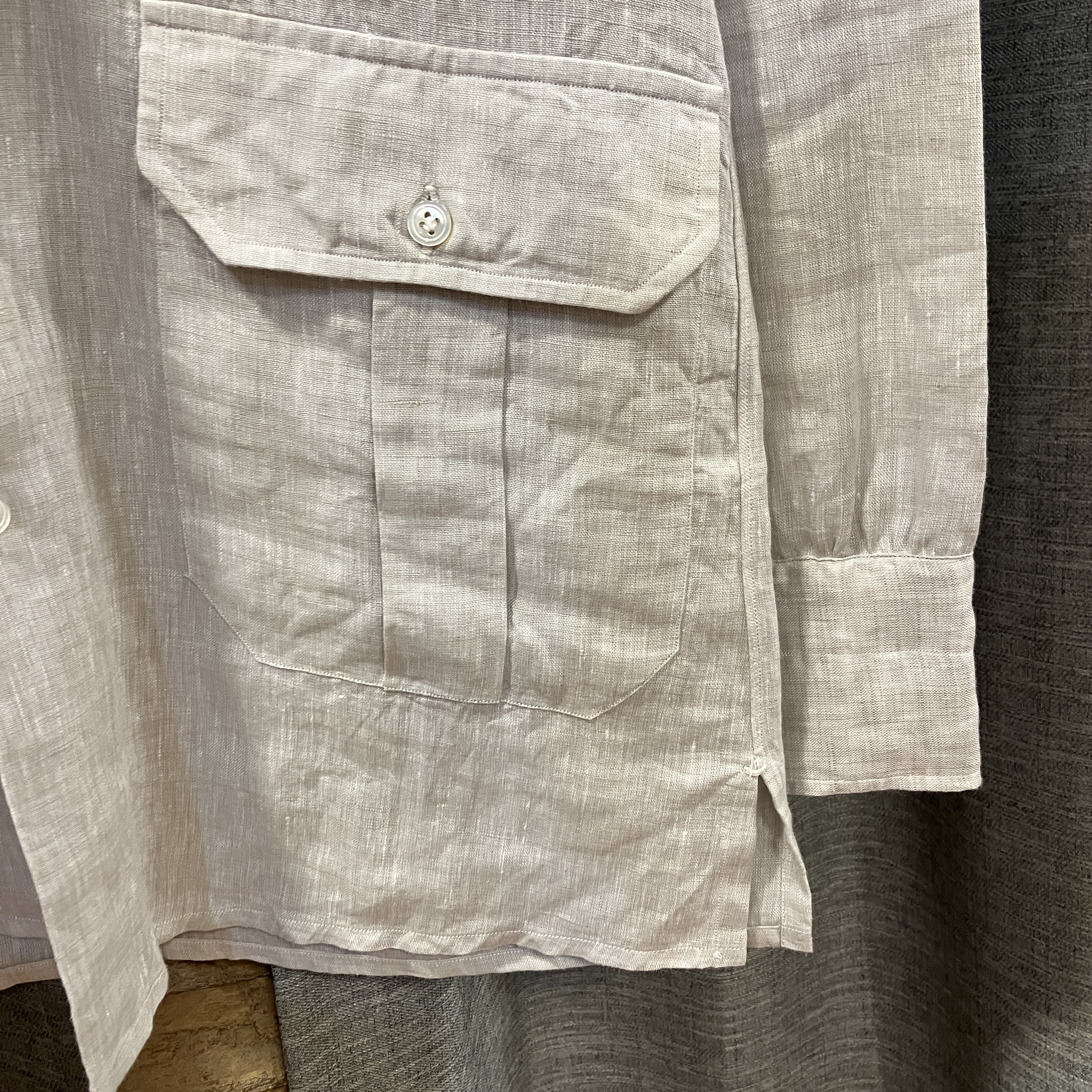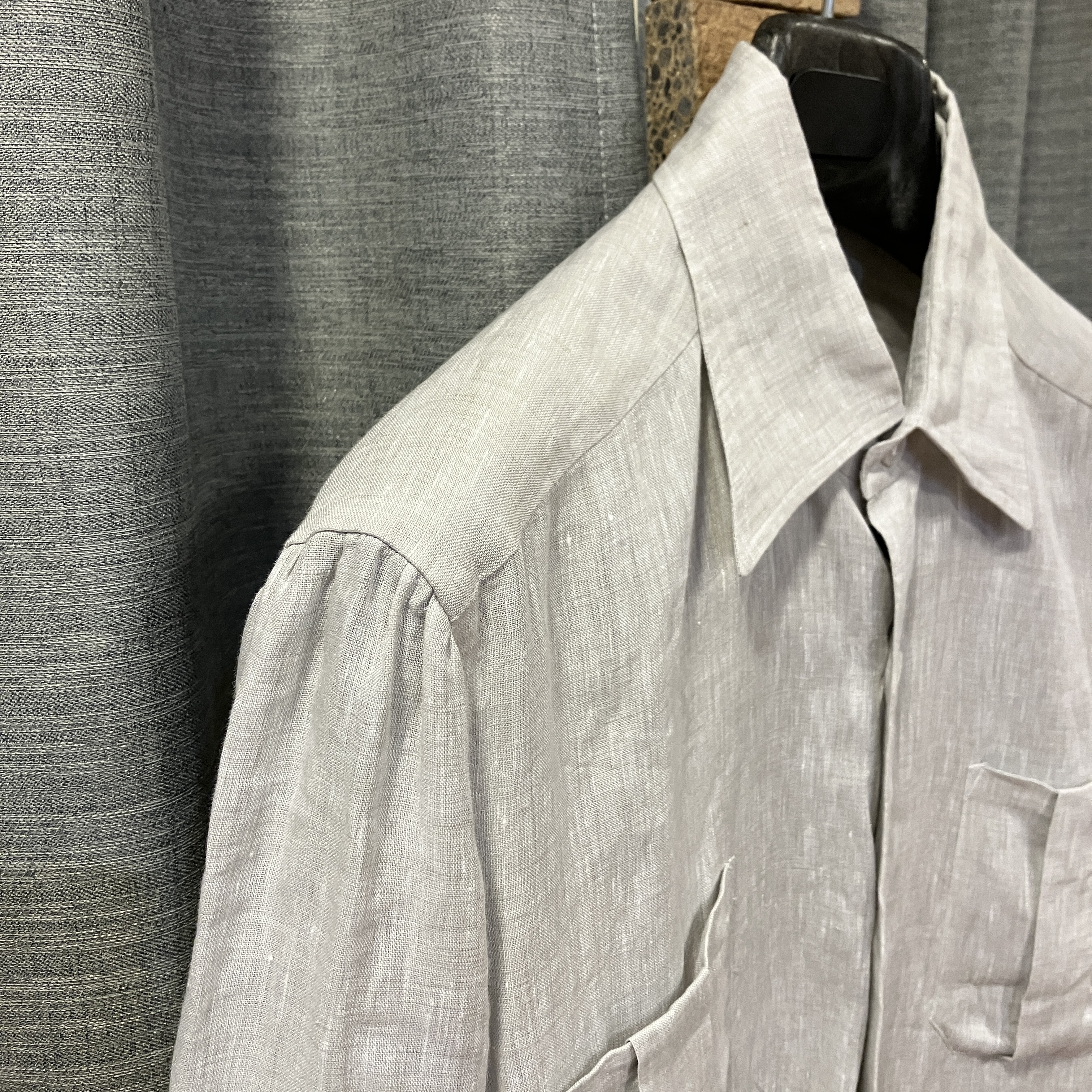 LINEN SAFARI SHIRT LIGHT GREY《S》