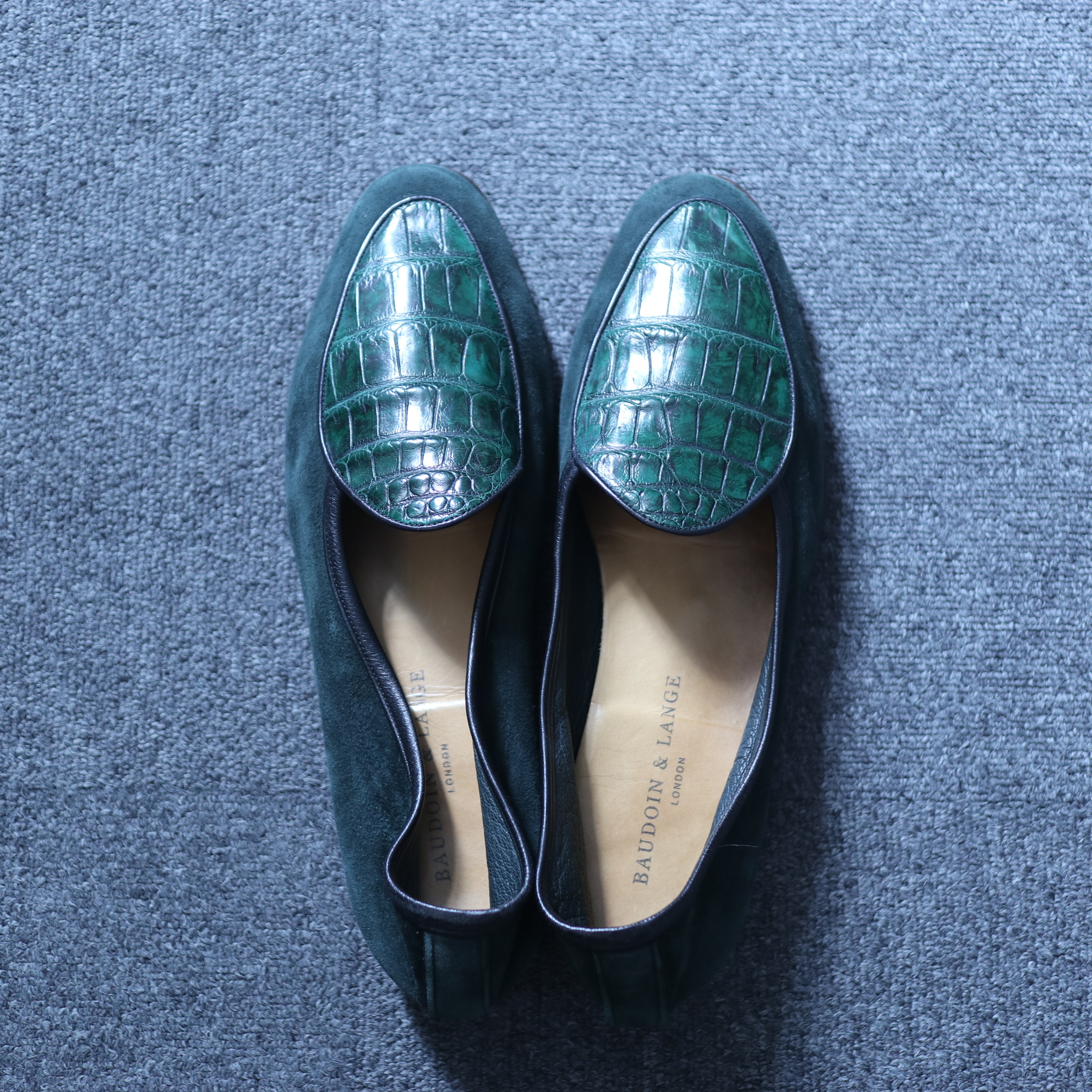 ”SAGAN” SUEDE / CROCODILE COMBINATION LOAFERS《41》