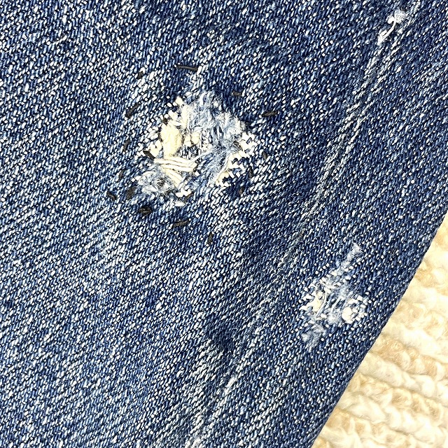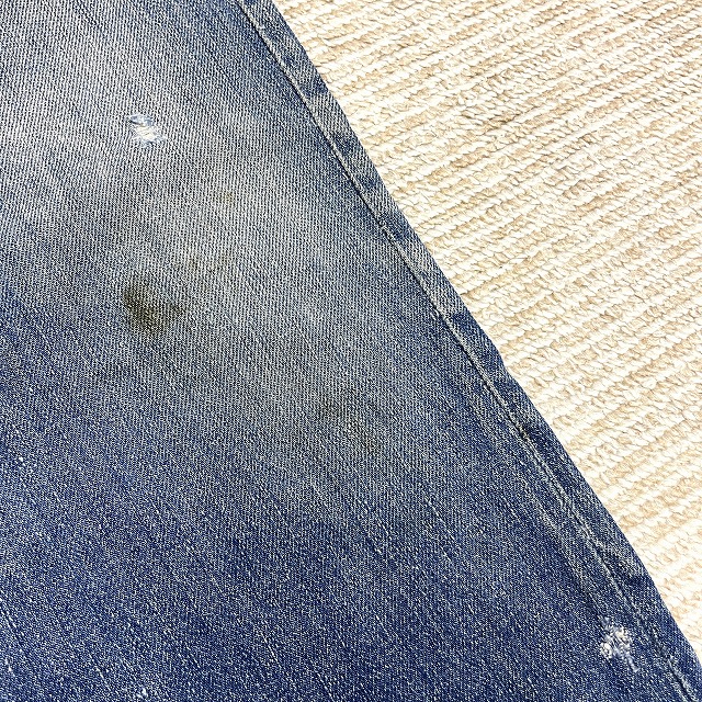 - 画像のように、汚れ、キズ、アタリ、ステッチ抜けがあり、左ふくらはぎサイドにリペアがございます。