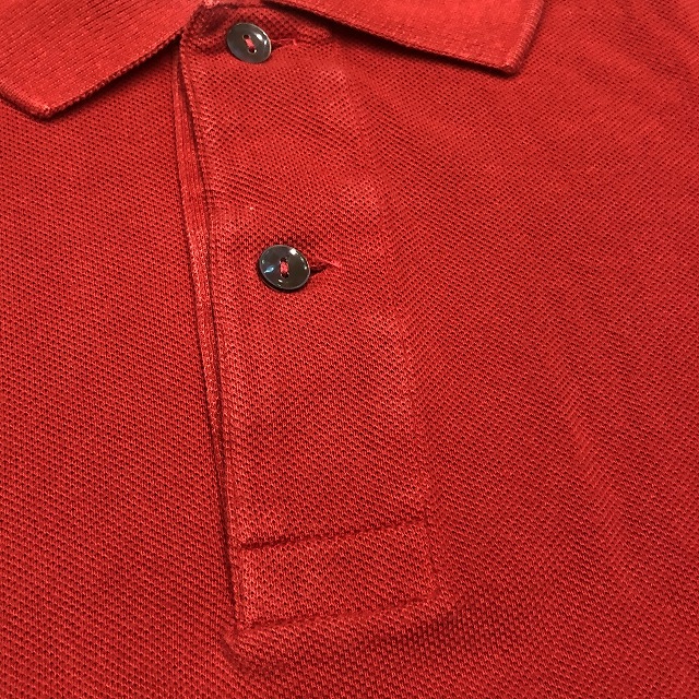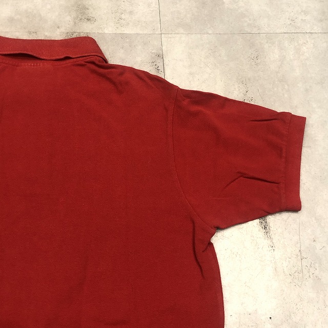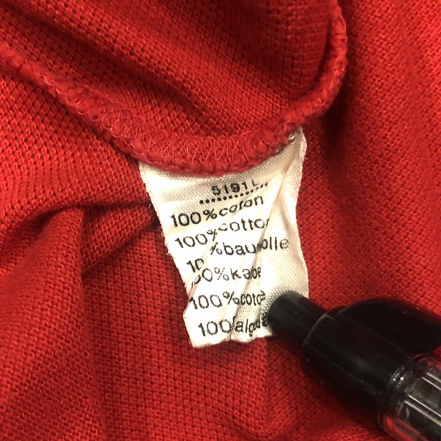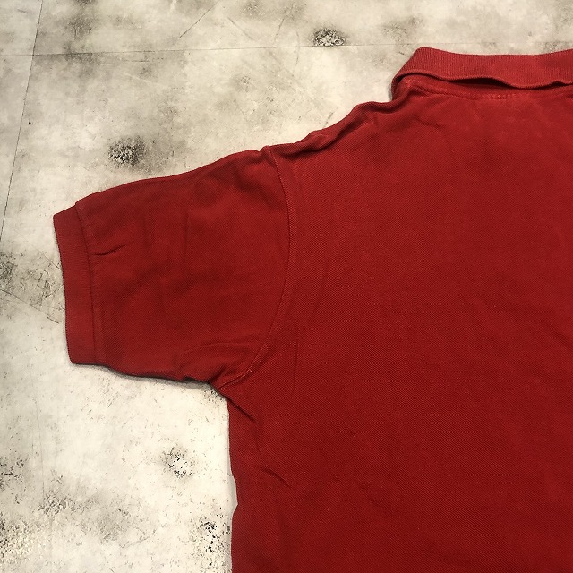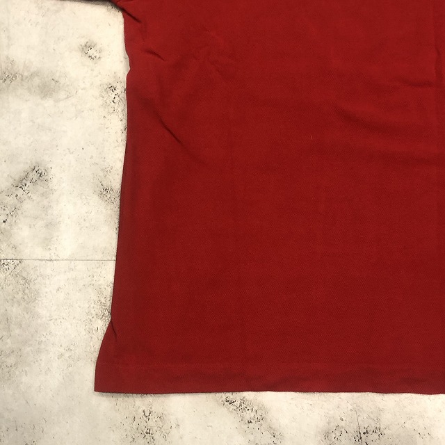 こちらは鮮やかなレッドカラー、タグ表記“3”サイズの一着。ブランドのアイコンとも言えるワニのワッペンが胸元にしっかりと鎮座し、さりげなく存在感を放っています。