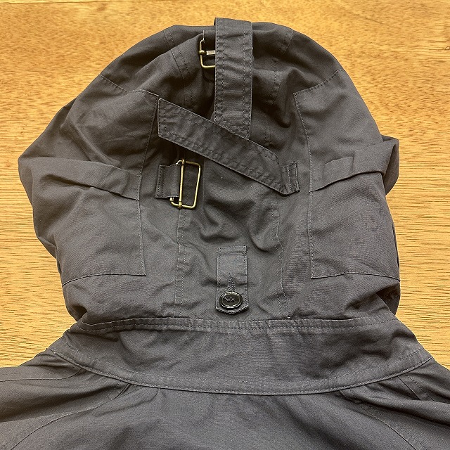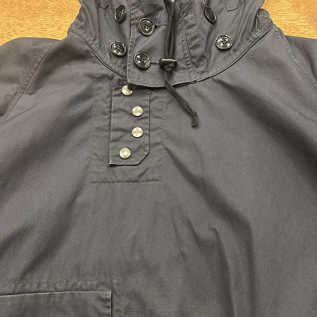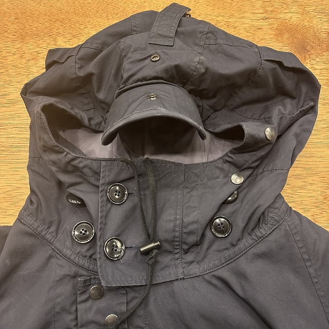 海軍が甲板作業時に着るように設計されていることから、頭をスッポリ覆える程大きく、日差し避けの付いたフードや、作業時のヘッドギアのコードを通すスナップギミック、雨天時にも雨風を通さない程の高密度コットンで知られるベンタイルを使用した機能性の高い一着。