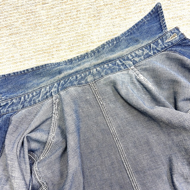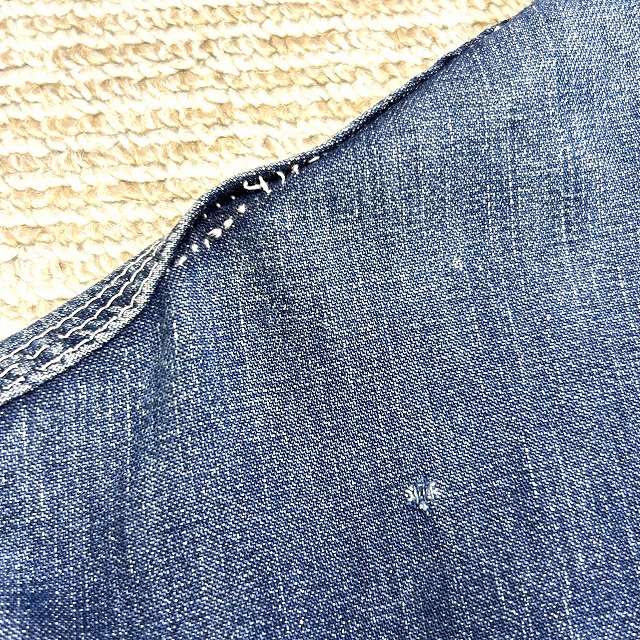 - 画像のように、汚れ、キズ、アタリ、ステッチ抜けがあり、肩等に手縫いで簡易的なリステッチがございます。