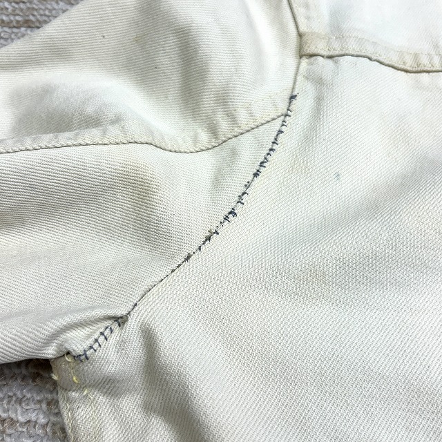 肩や脇等にステッチ抜けがあり、後左アームホールに手縫いで簡易的なリペアがございます。