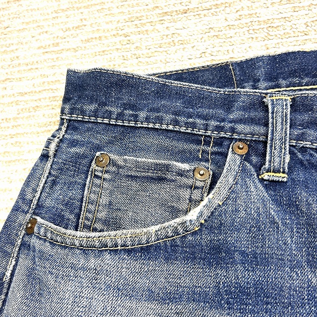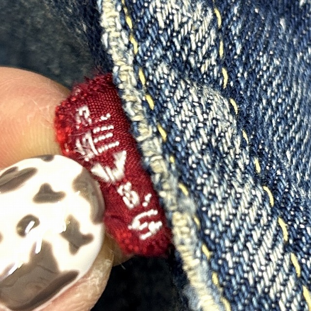 トップボタン裏『不明』、均等V、CONMARジッパー、ポケット裏リベット銅色、