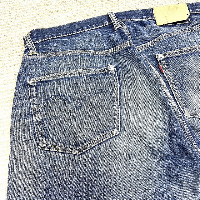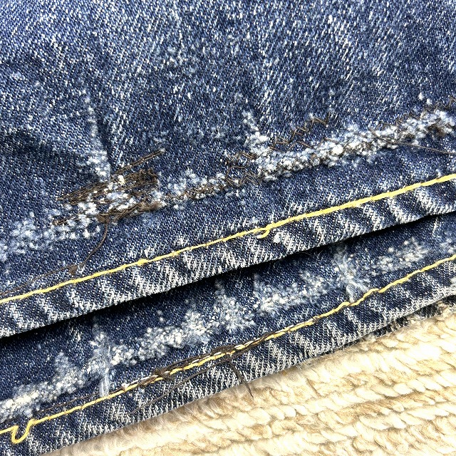 - 画像のように、汚れ、キズ、ステッチ抜け、アタリがあり、裾にリペアがございます。