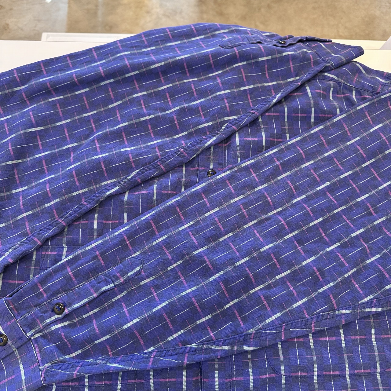 - 細かなスレ、生地の毛羽立ち、ポケットボタン欠損など相応の着用感はございますが、問題なく着用可能な状態です。
