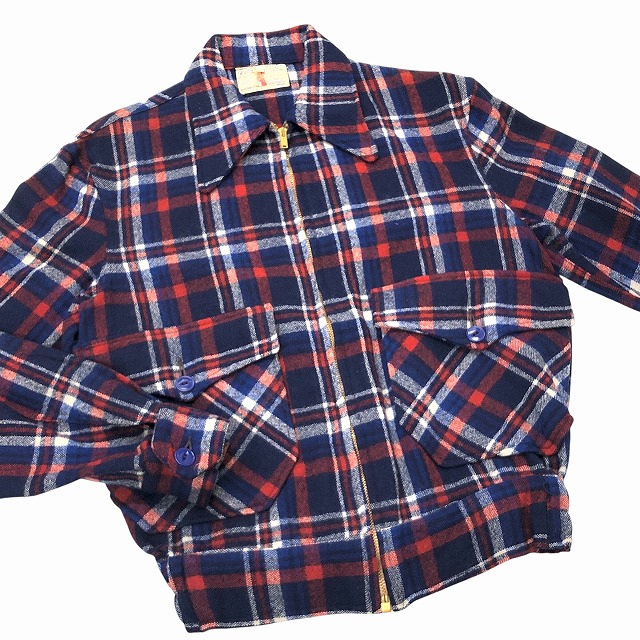 青(紺)×白×赤チェック、TALONコの字留めジッパー