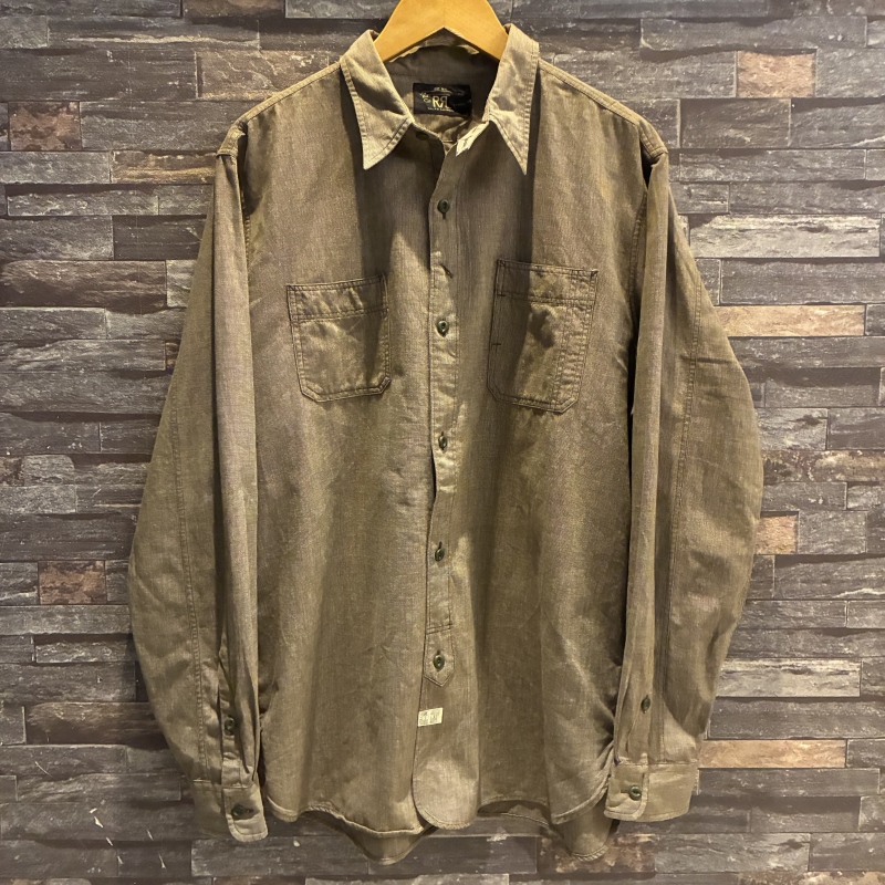 RRL PIN CHECK JACK RABBIT WORK SHIRT BROWN