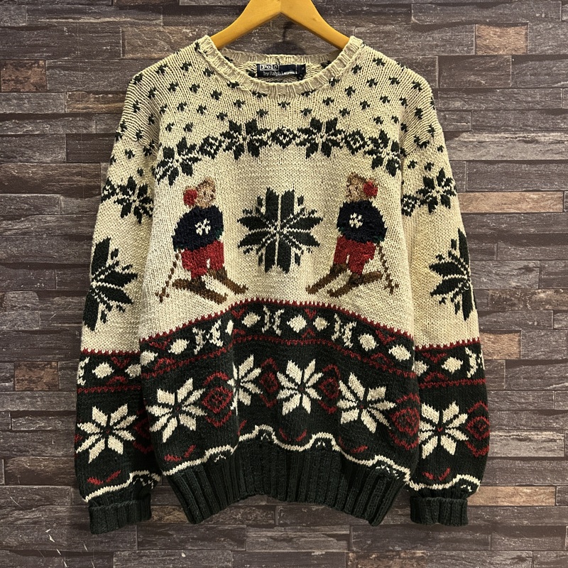 RALPH LAUREN POLO BEAR NORDIC LINEN COTTON SWEATER