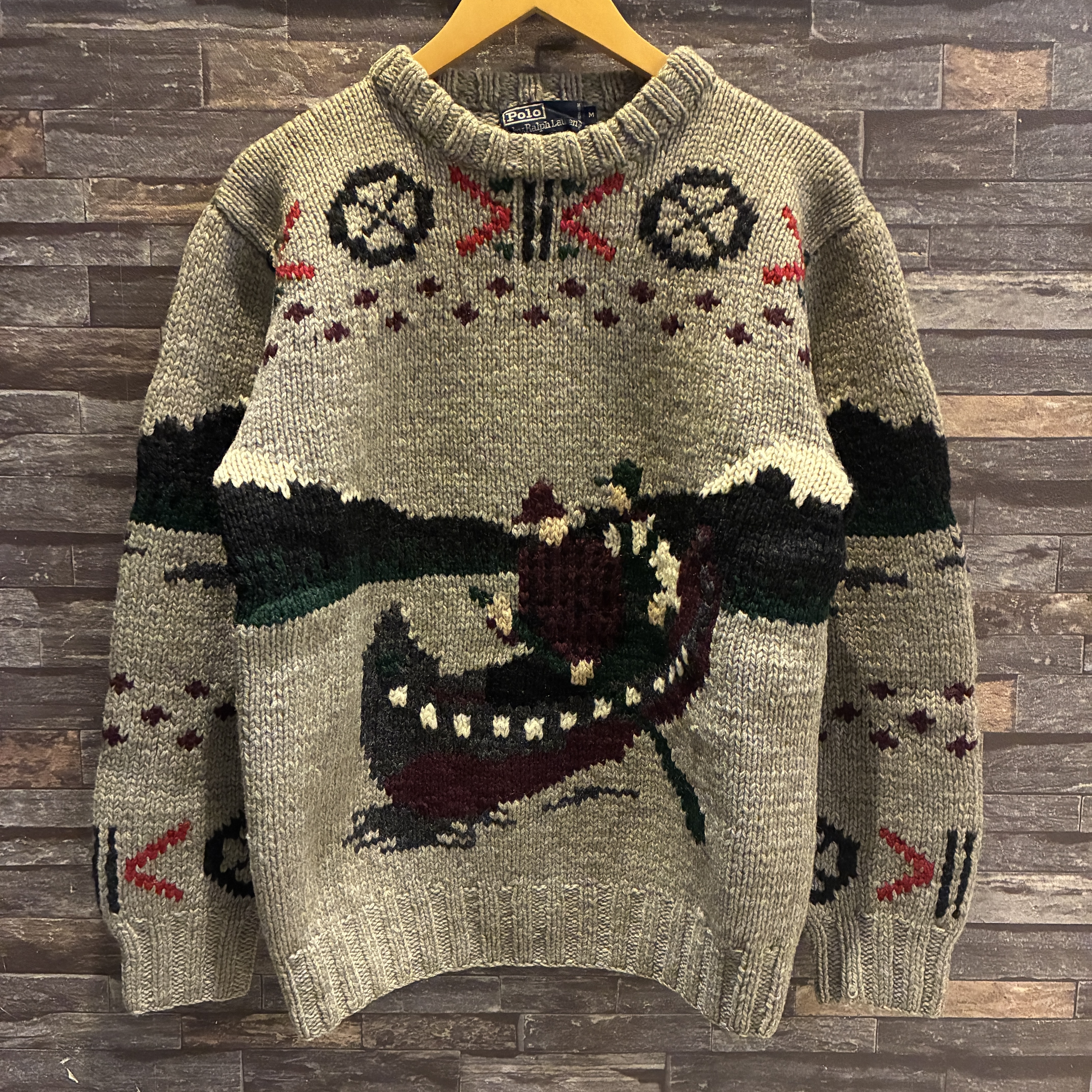 RALPH LAUREN WOOL HAND KNIT SWEATER ”CANOE” 1990'S OLD