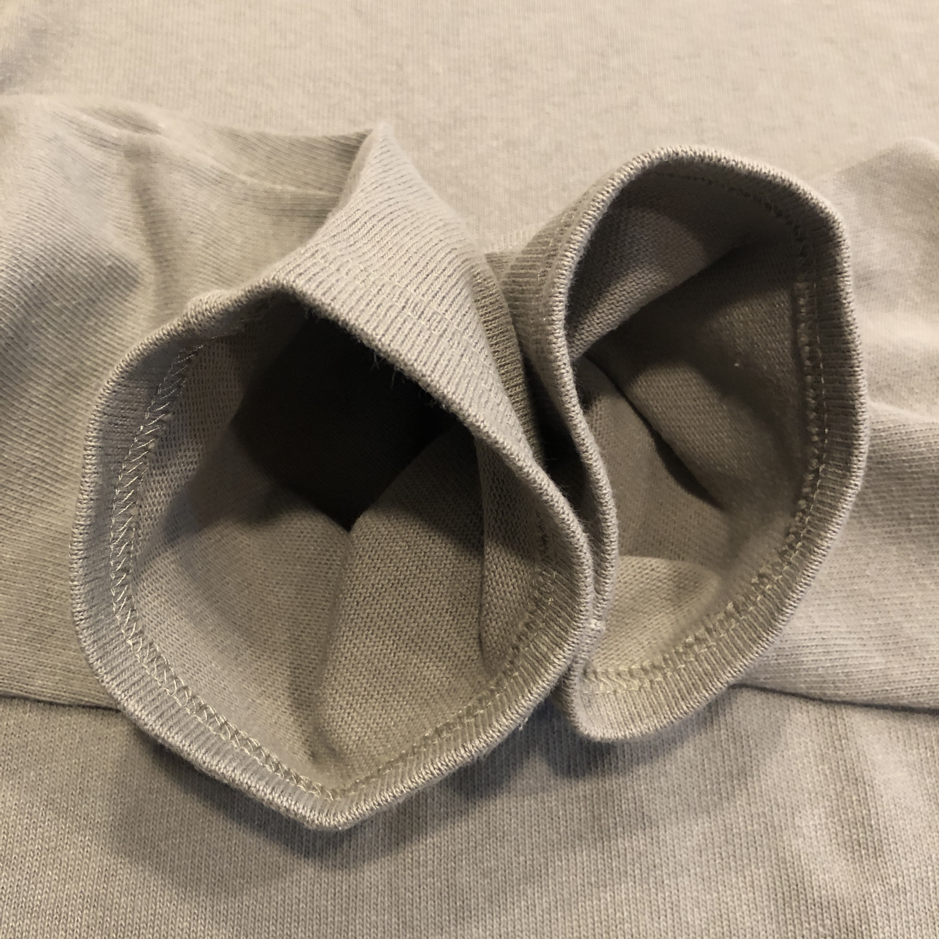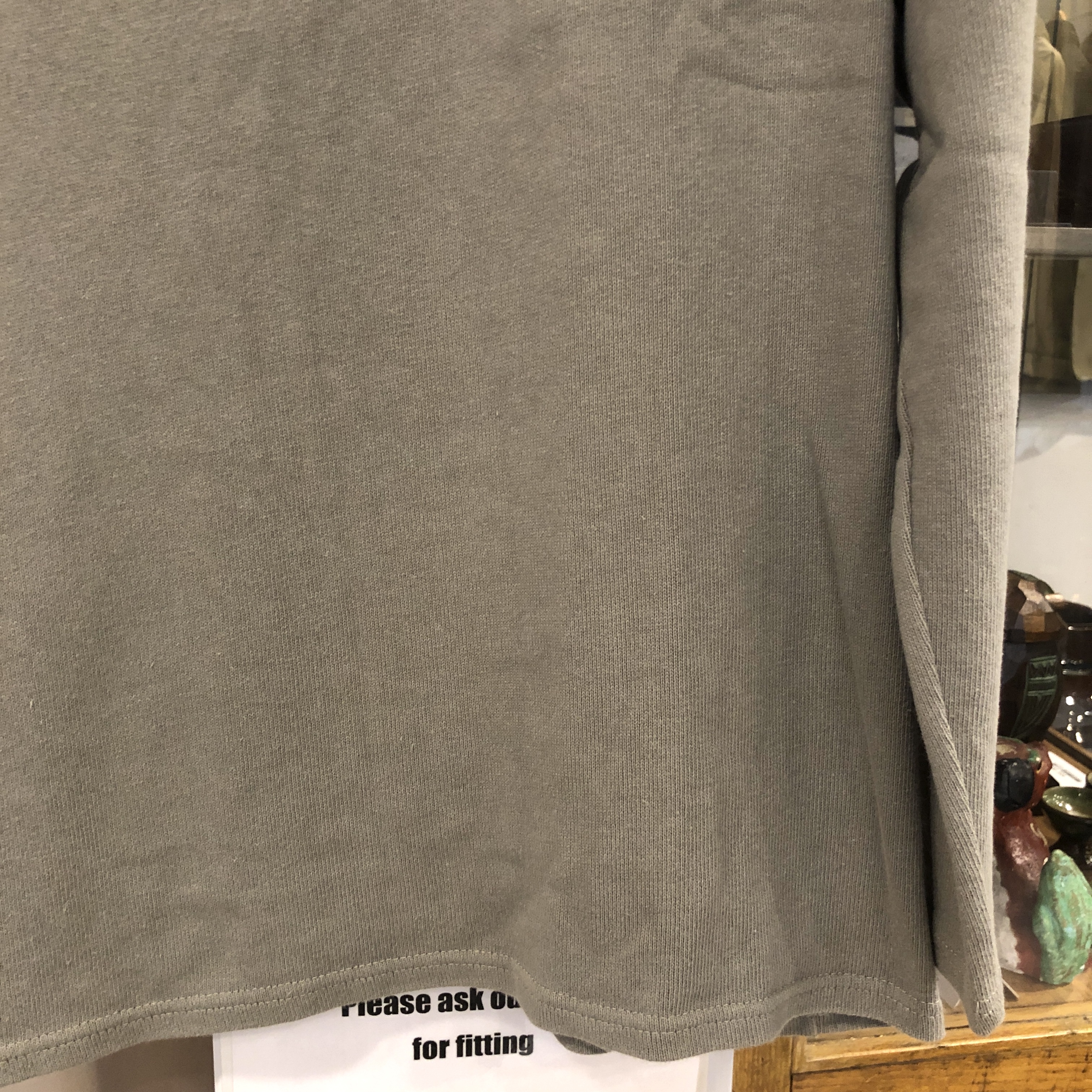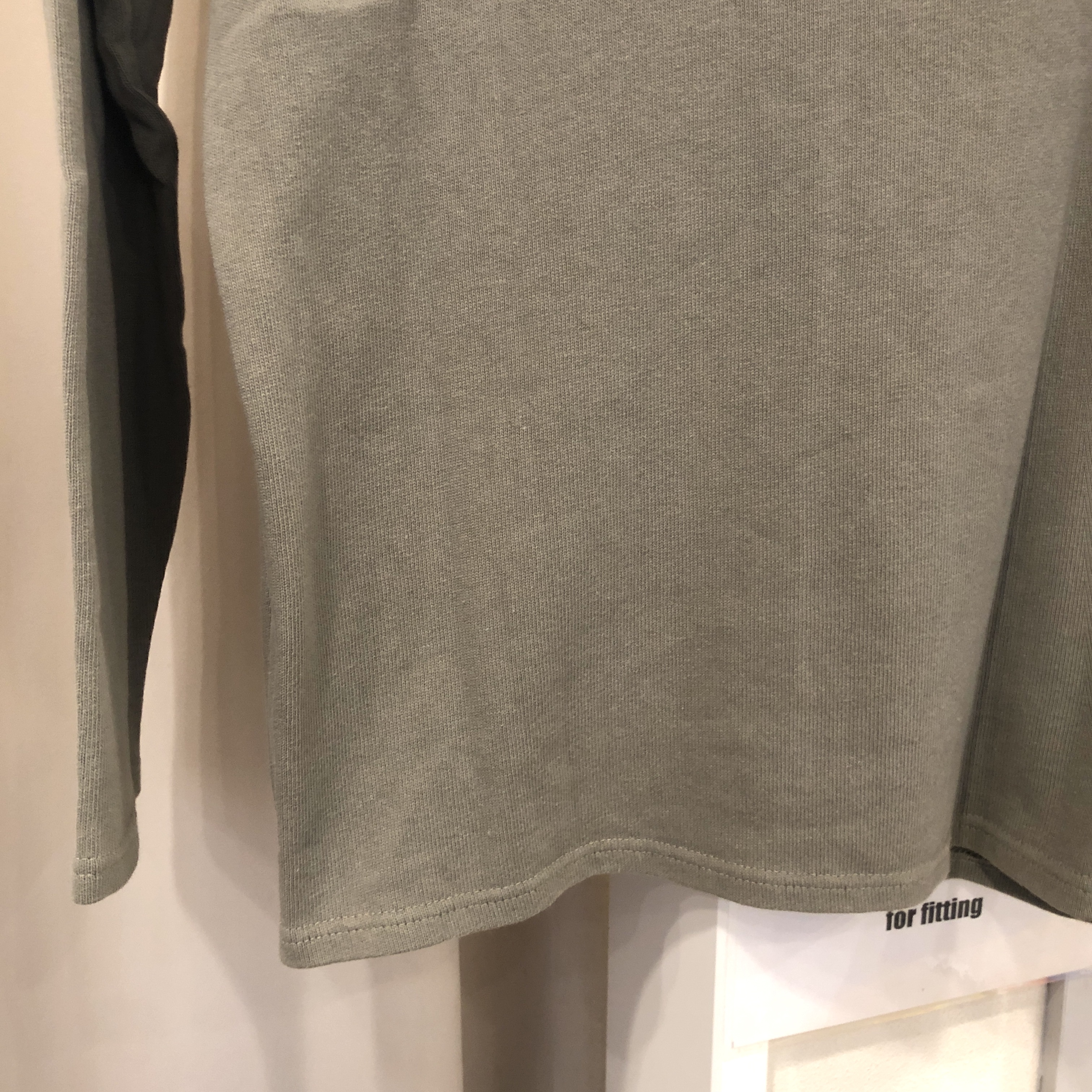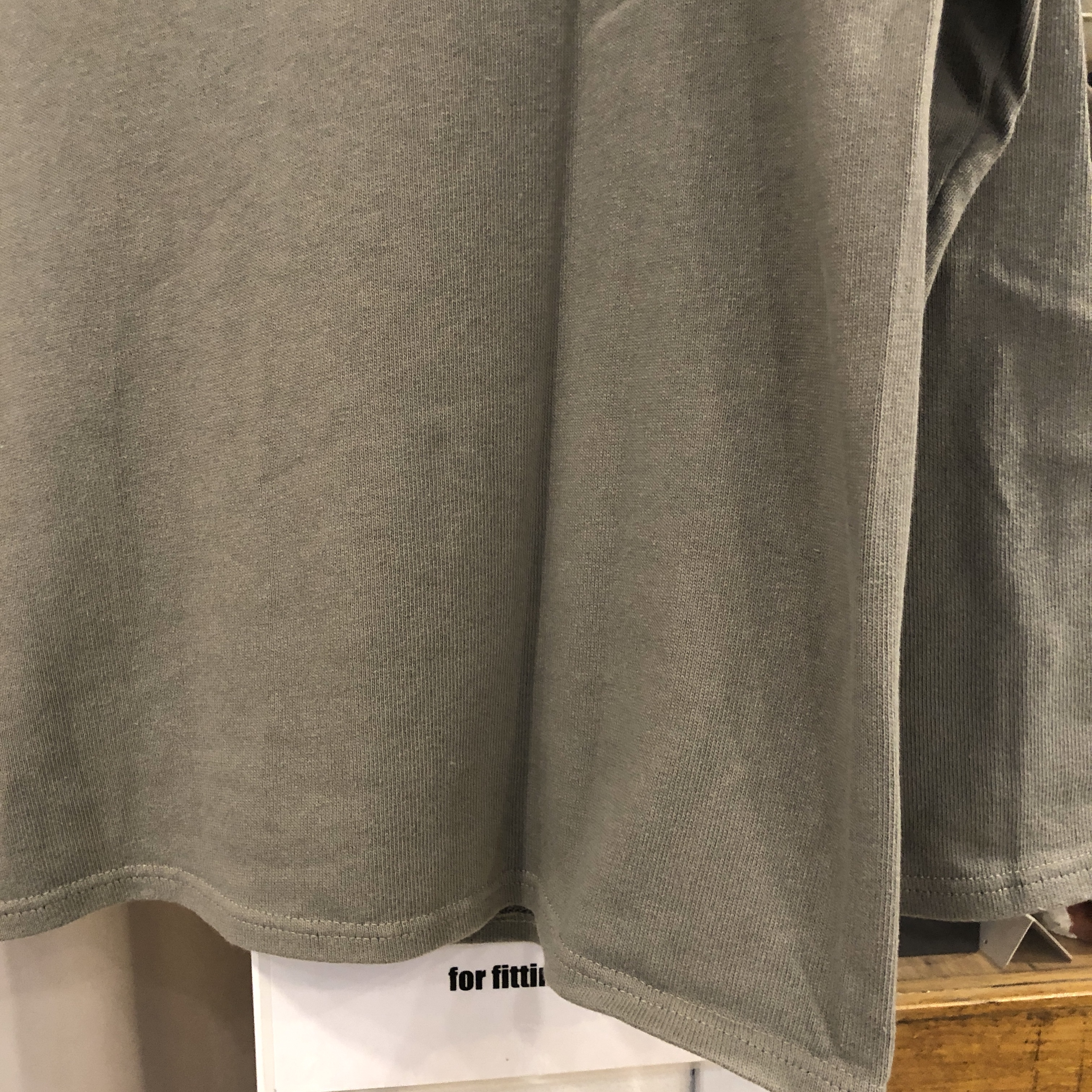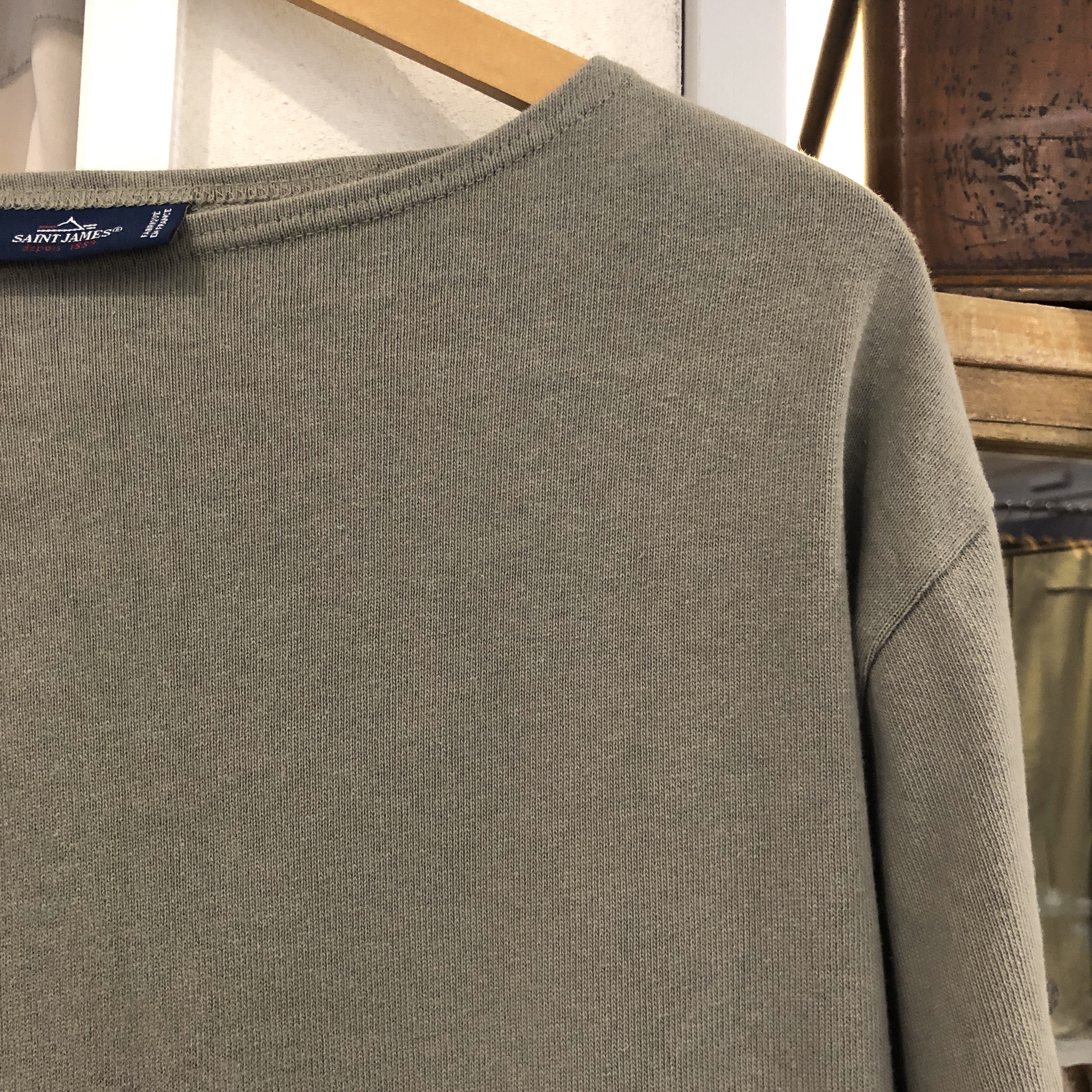 今回ご紹介するのは、落ち着いたオリーブグリーンの一枚。鮮やかなマリンボーダーの印象が強いウエッソンですが、この無地かつ深みのある色合いは、ミリタリーやワークスタイルにも馴染み、カジュアルからシックまで幅広く対応します。素材は100%コットンの目の詰まった天竺生地。着始めはしっかりとした張り感があり、洗い込むことで徐々に柔らかく、肌馴染みの良い風合いへと育っていきます。