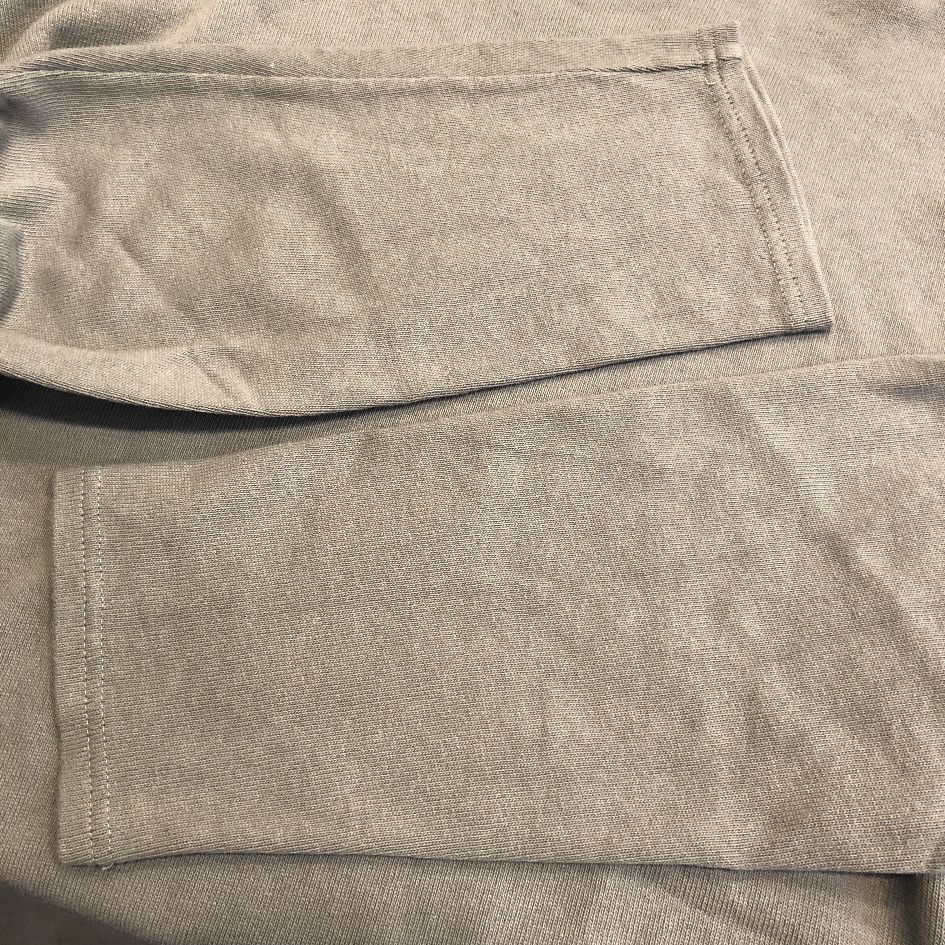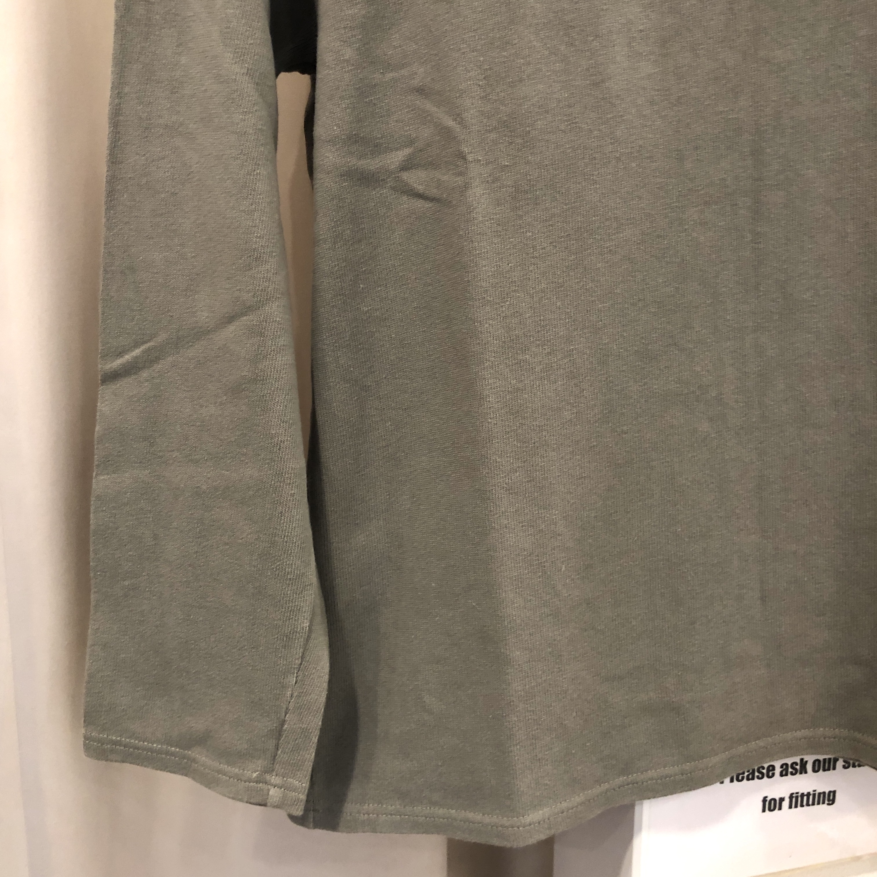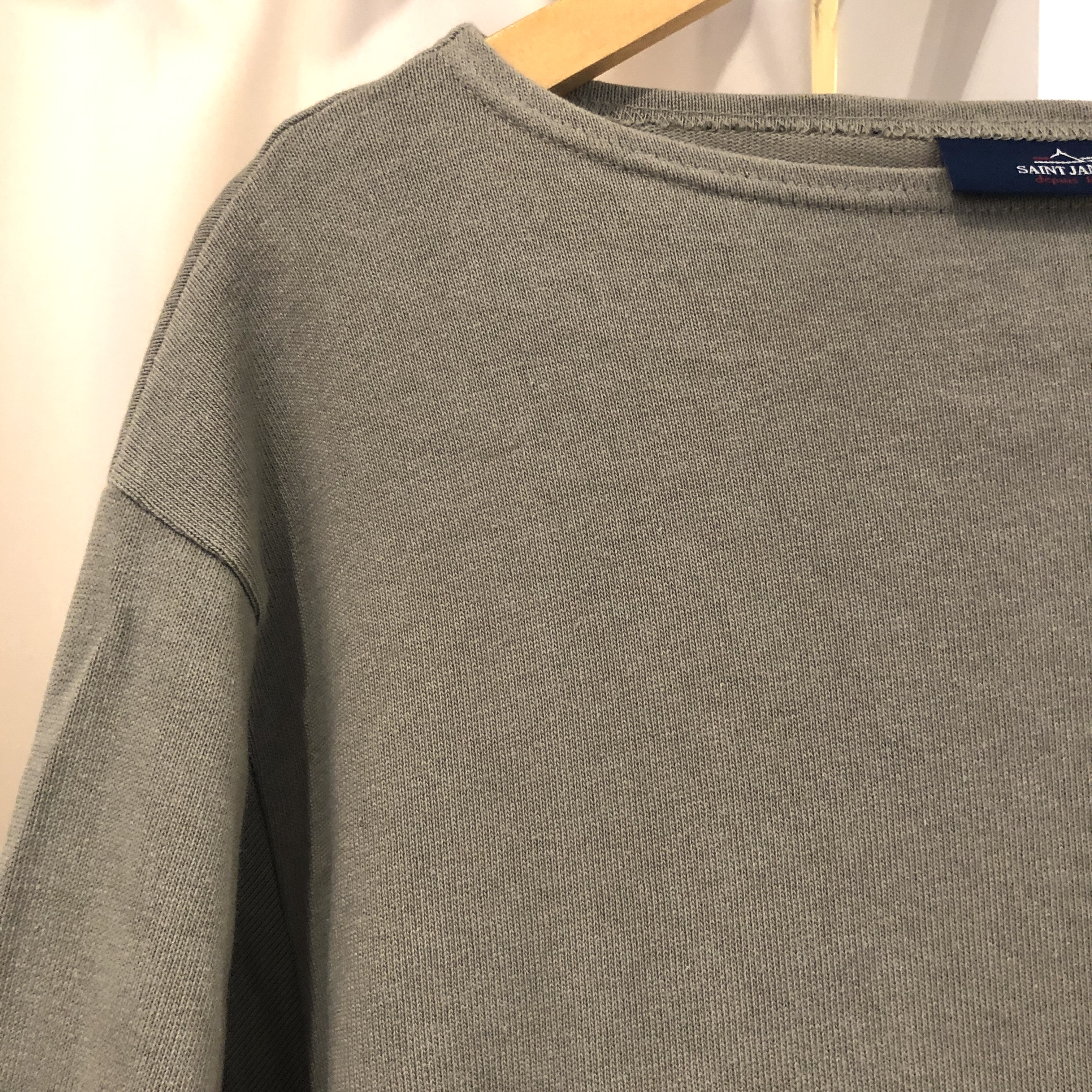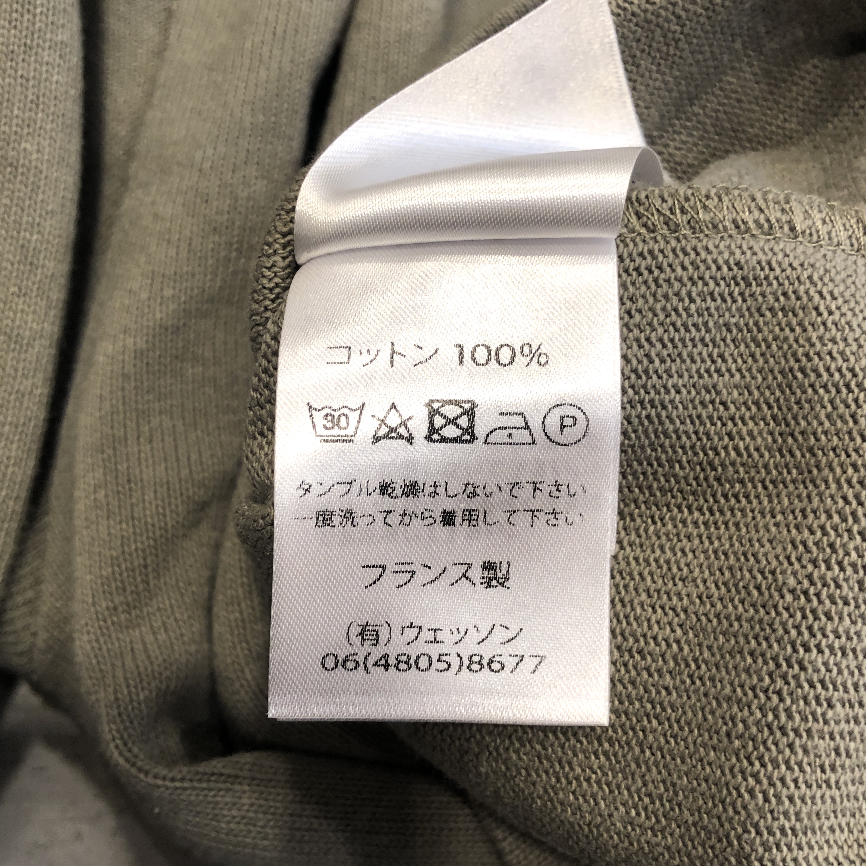 クラシックなボートネックと肩線の落ちたストレートなパターンは、重ね着にも最適。袖口にはブランドロゴのネームパッチを控えめに配置。製造はもちろんフランス自社工場で行われ、国内正規代理店(ウェッソン社)のタグ付き。サイズはフランス表記T5(国際サイズML)で、男女問わずゆとりあるシルエットを楽しめます。