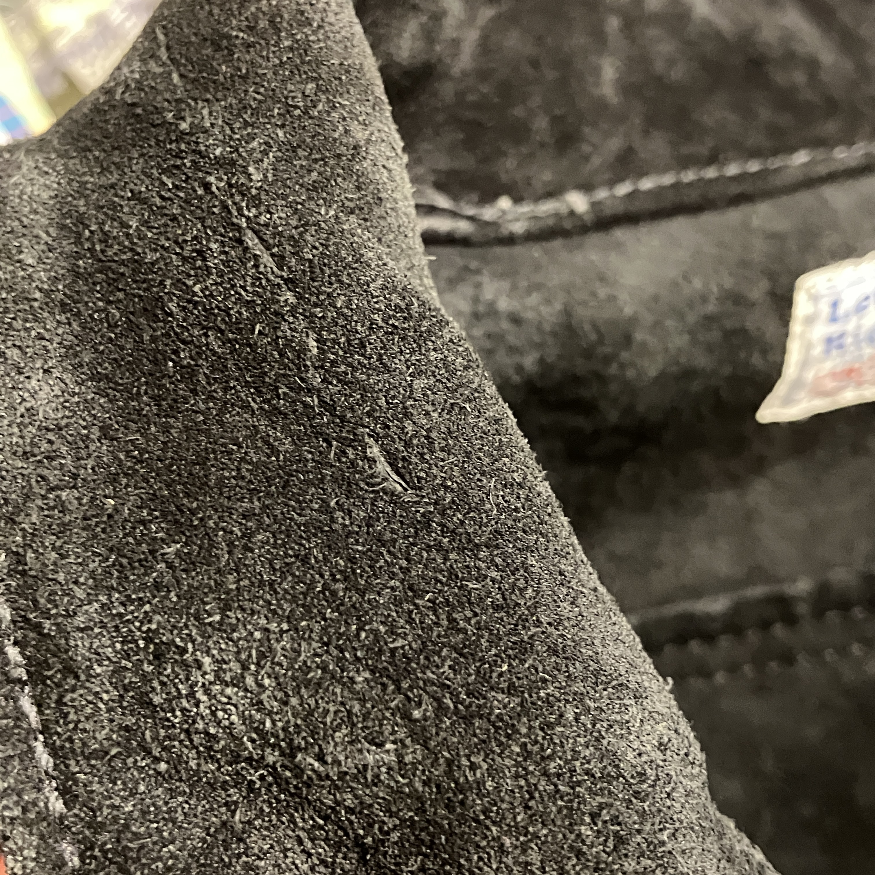 - 全体的に素材特有のスレやアタリがみられます。また、襟のステッチ抜けがみられます。その他、小さな傷等の年代相応の着用感ございますが、まだまだ問題なく着用していただけます。