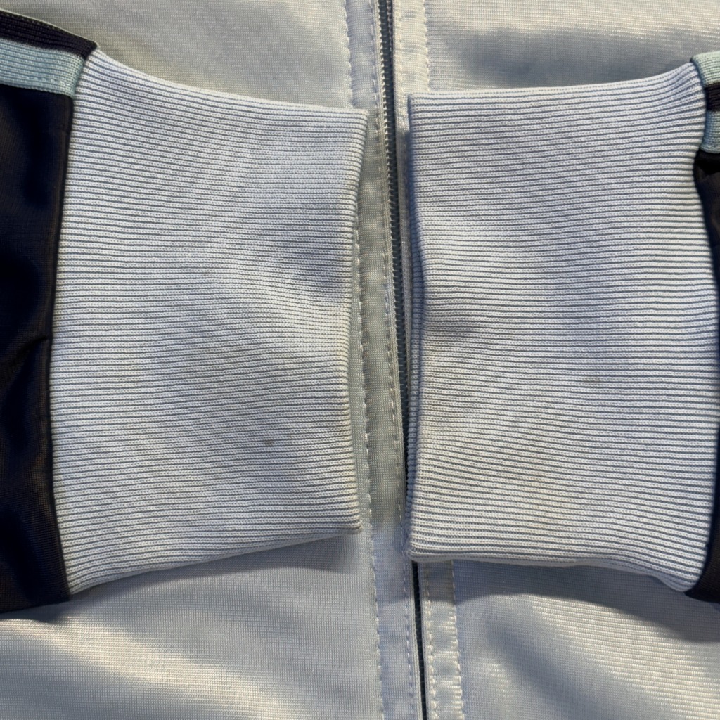 - 着用感や画像のように汚れやシミ、ジッパー錆が見られますが