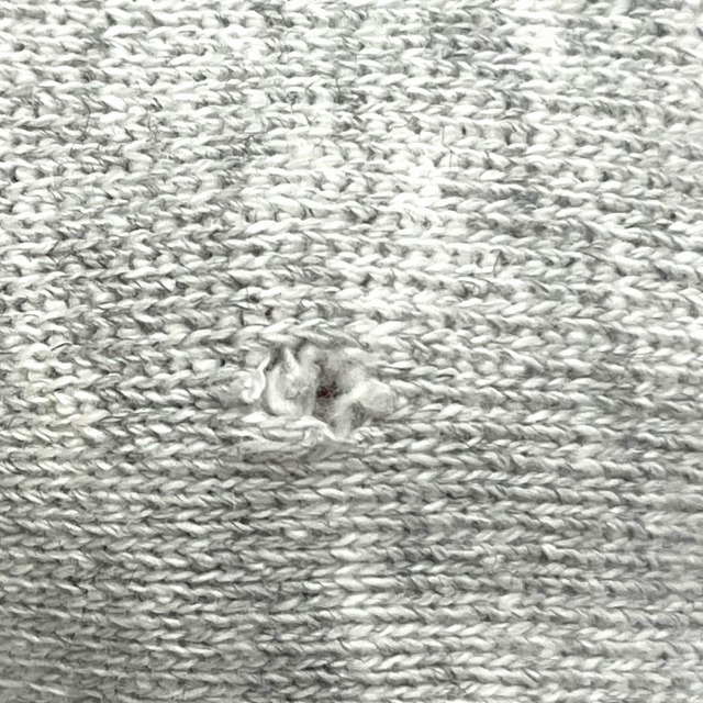 - 画像のように、ネック周りや袖口に破れがあり、前左脇腹付近に小穴がございます。