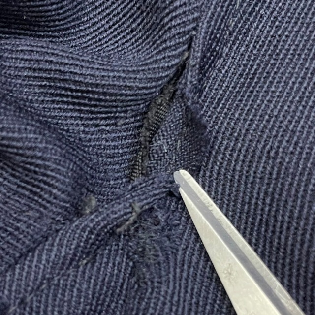 - 画像のように、右脇にステッチ抜けや手縫いで簡易的なお直しがございます。