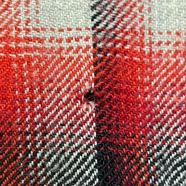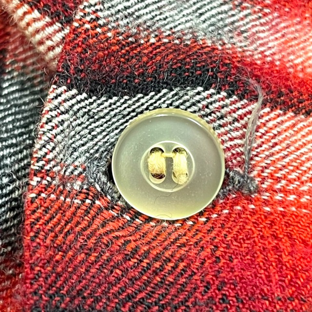 フロント最下部ボタン付け根の生地にダメージがございます。